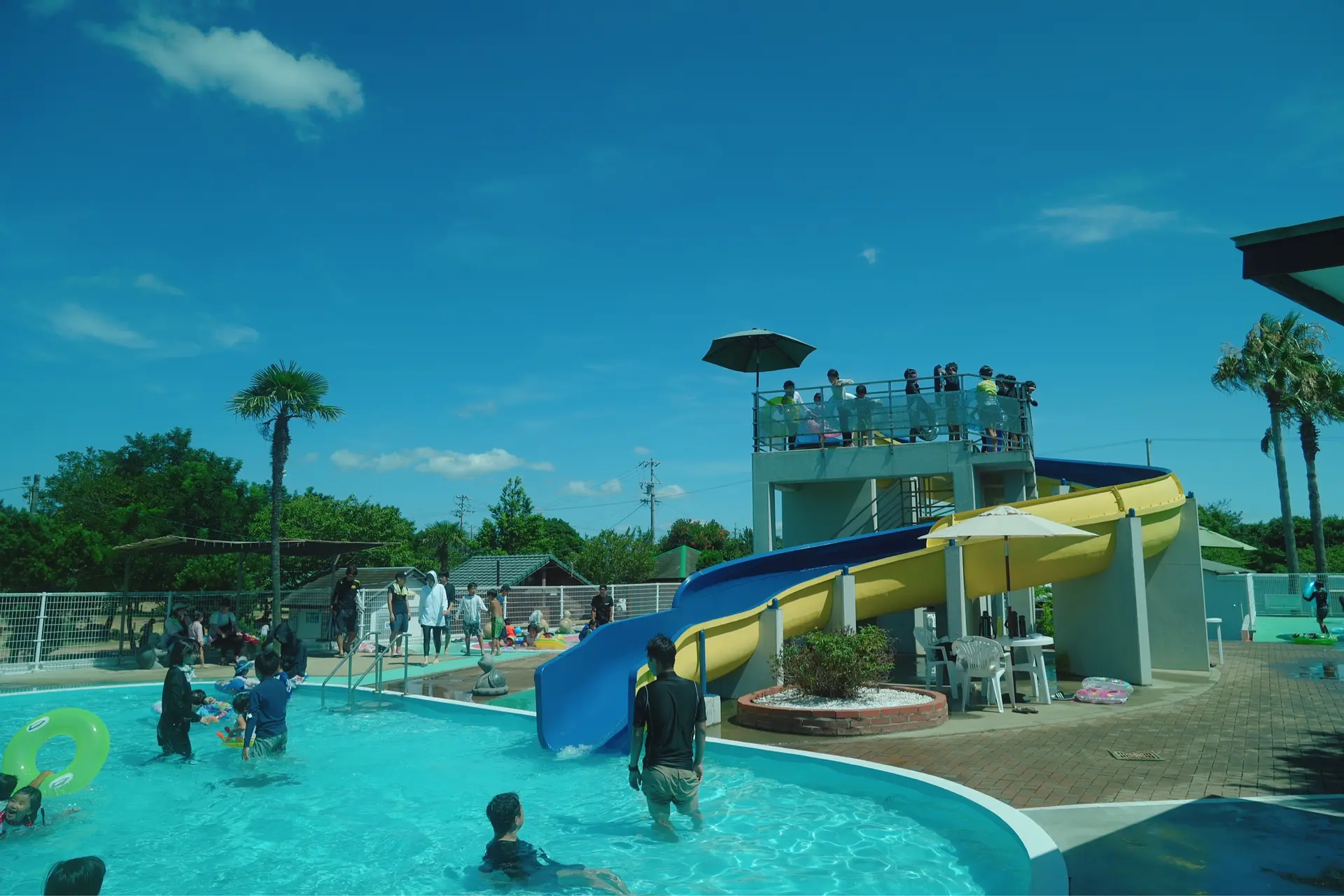 なんと!!キャンプ場敷地内にウォータースライダー完備の綺麗なプールがあるんです!