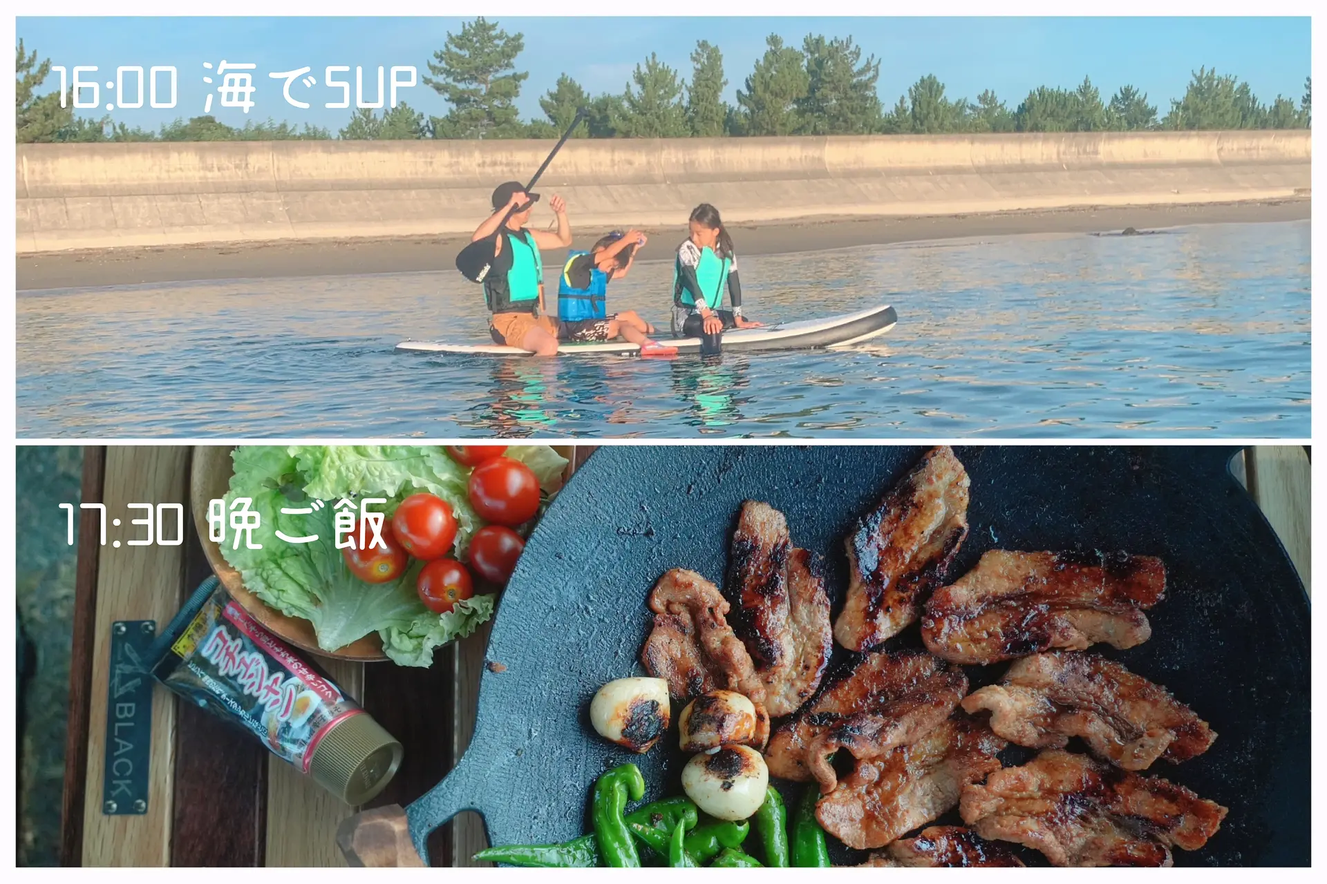 夕方、子供達と海でSUP。その間にママは美味しいご飯を作ってくれています。