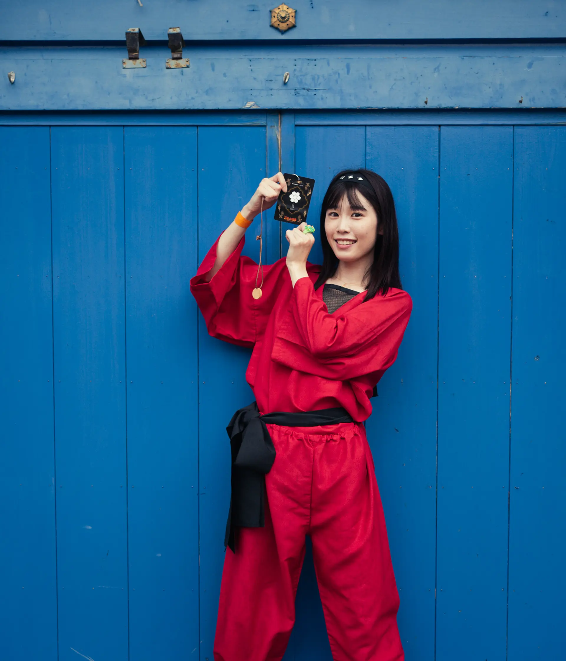 赤と黒の二種類から選べますが、今回は赤の忍者衣裳にしてもらいました。