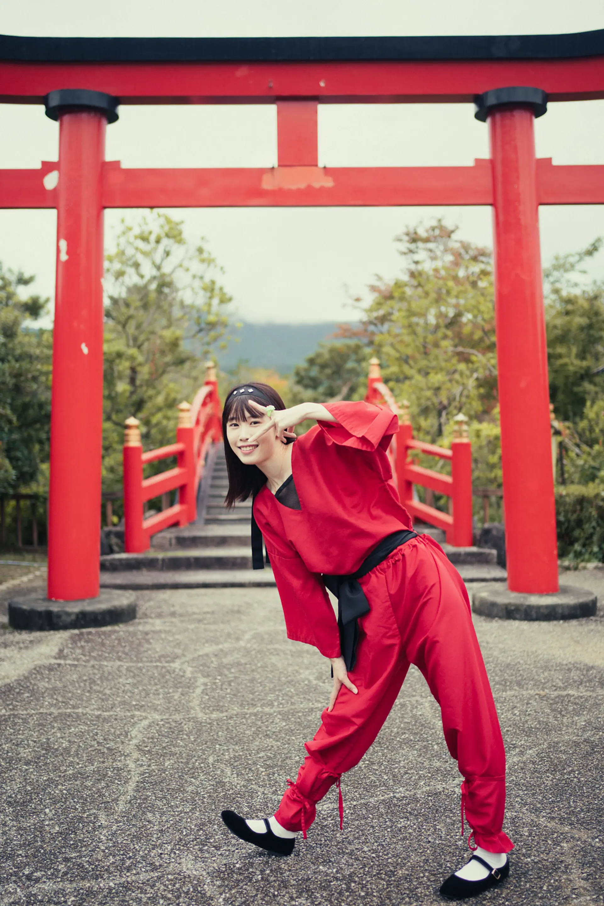 この写真の場合は、モデルと鳥居が重ならないようにしています。