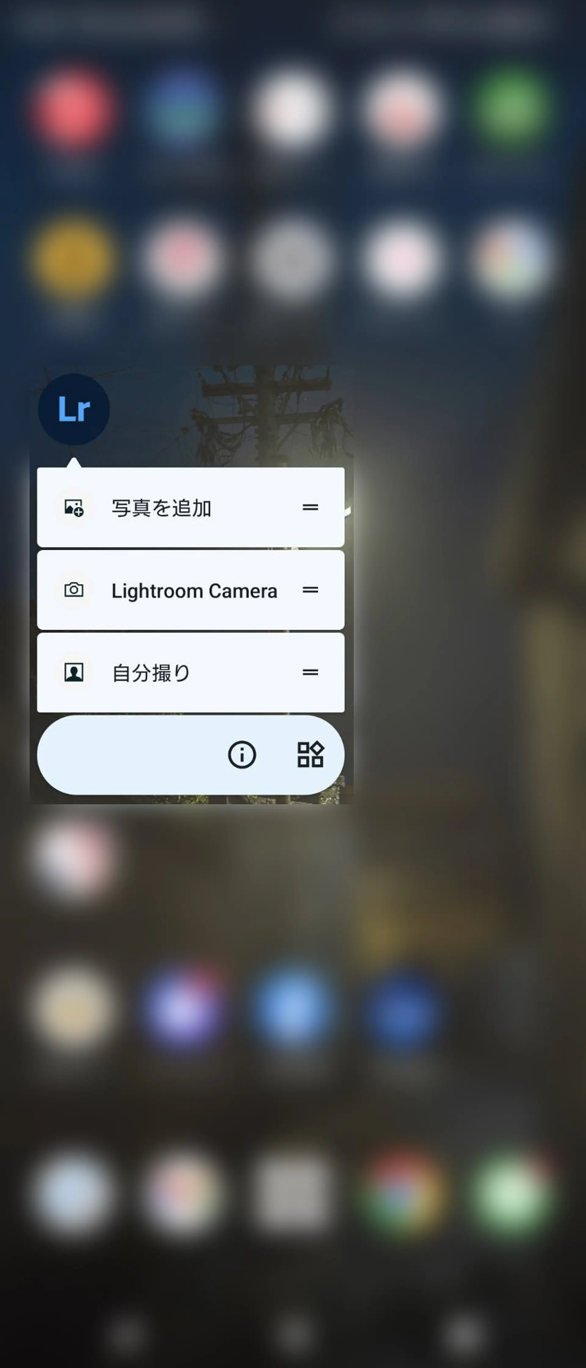 本来は写真編集アプリですが、ホーム画面のアイコンを長押しすることで、Lightroom Cameraを起動することができます。