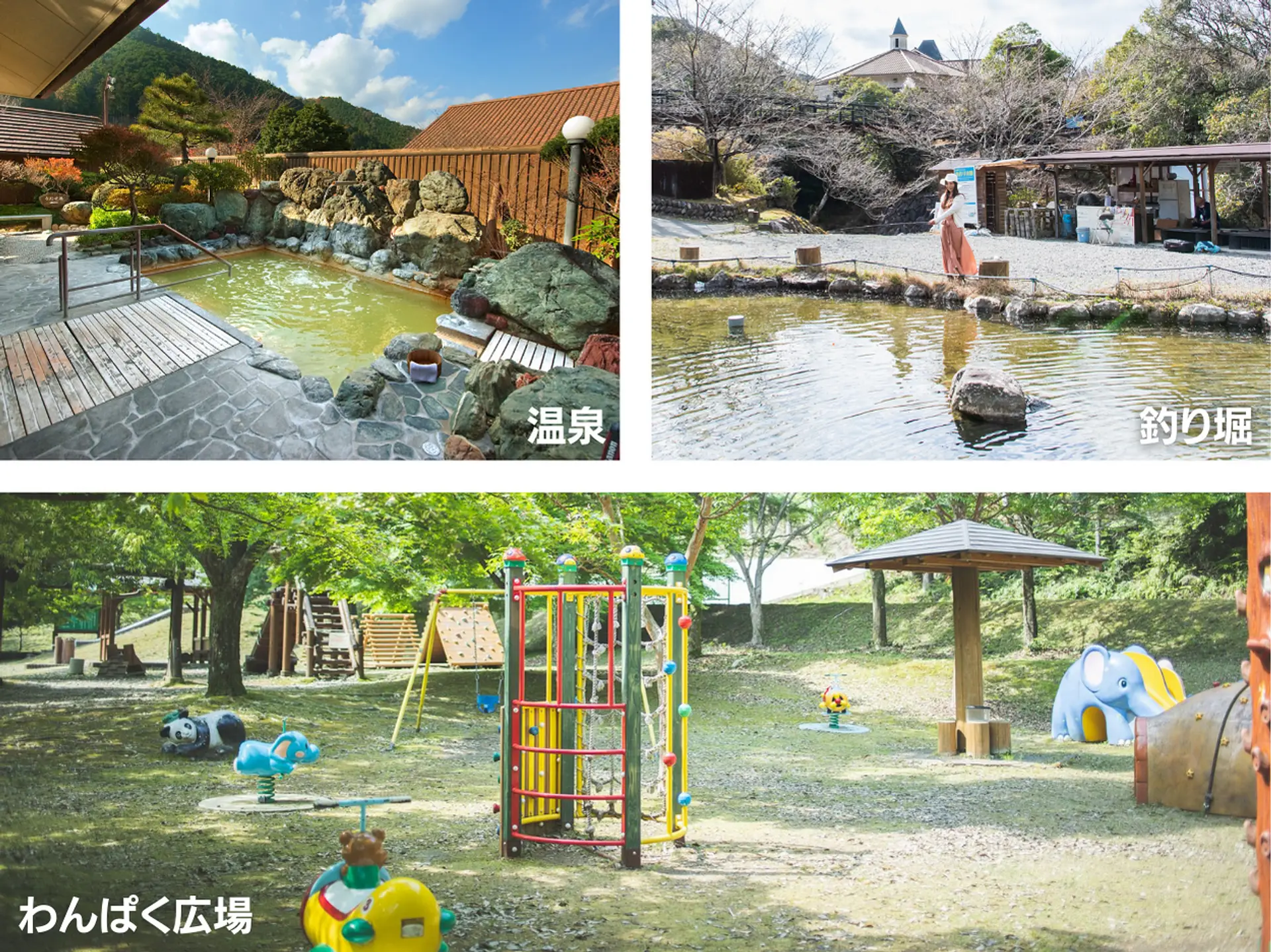 魚釣りや魚つかみができる釣り堀やアスレチックもあり、家族連れにおすすめ!