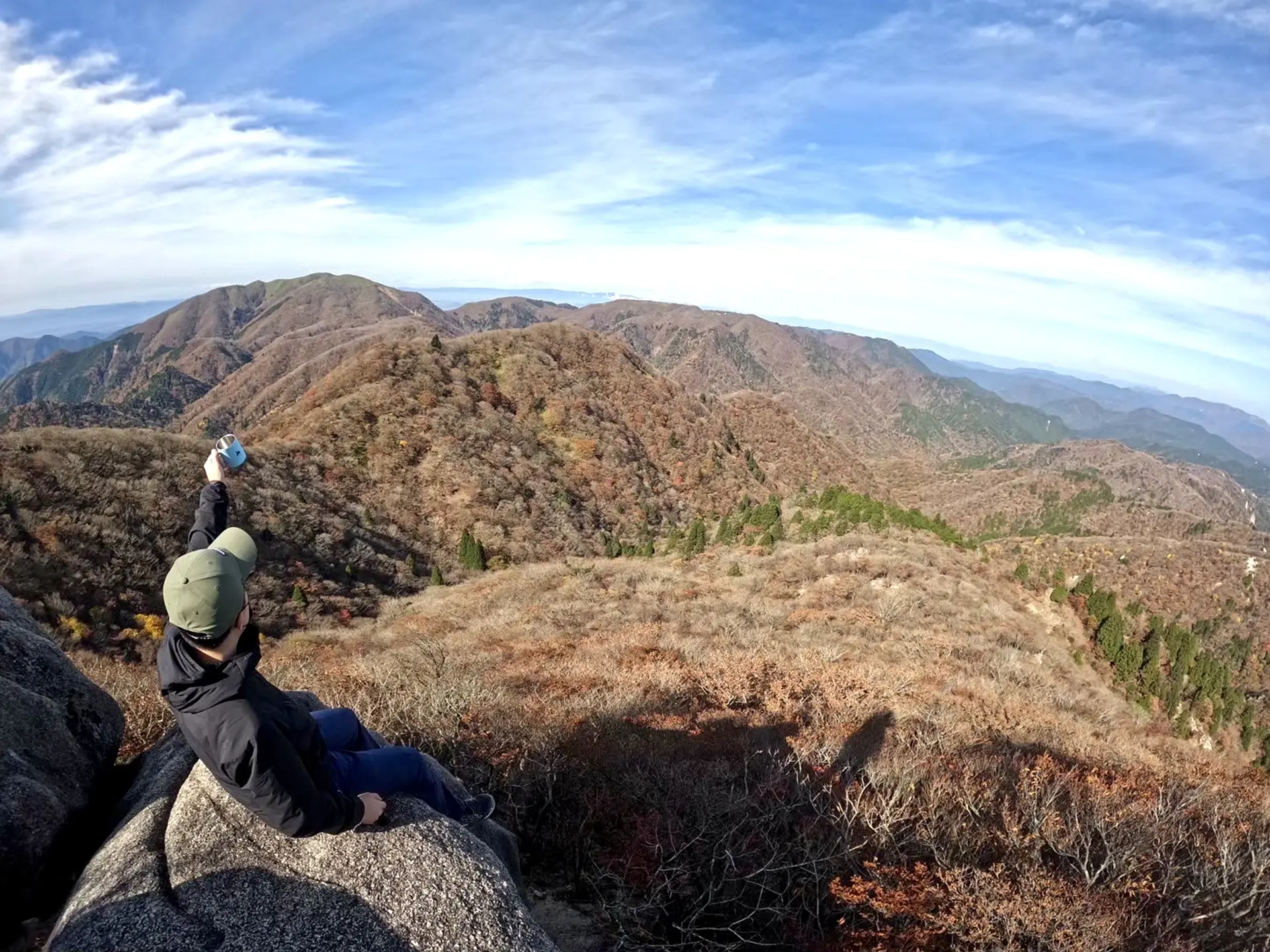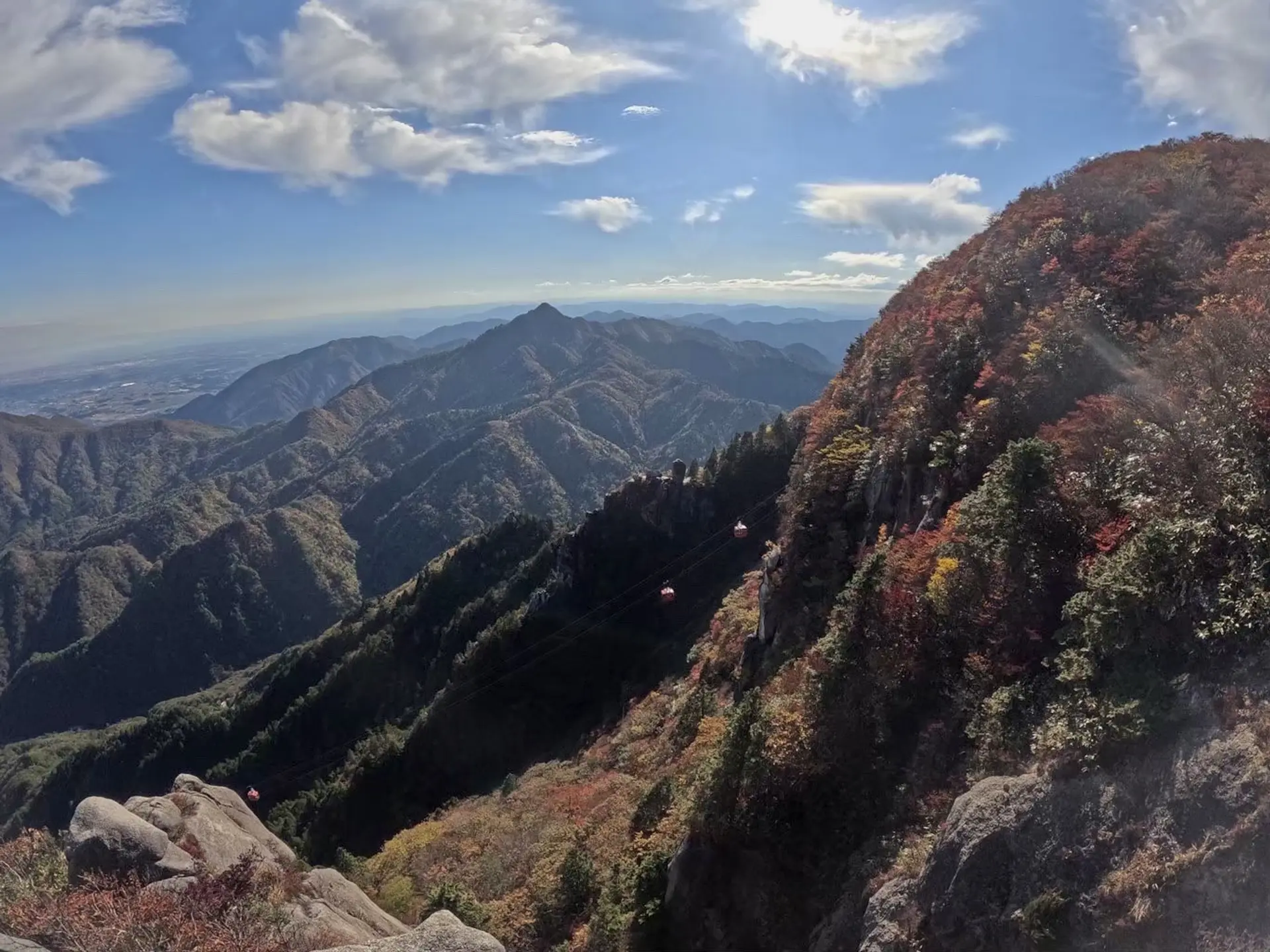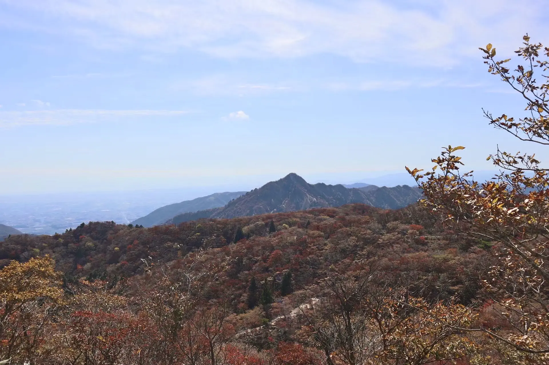 御在所岳の山頂に到着です!山頂からはこの絶景を眺めることができます。心が洗われるような紅葉の美しさです。山の自然の素晴らしさを存分に堪能することができます。