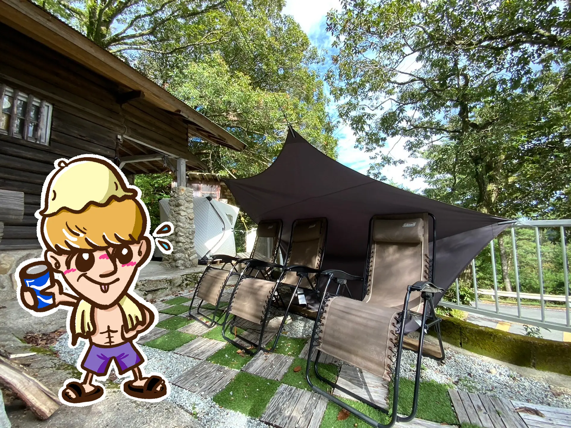 山荘外にはリクライニングシートが並び、外気で涼みChill Out!気持ち良すぎて、ついうたた寝してしまいそう・・・ 夜風にあたって涼みながら語り合うのもいいですね。素晴らしいスペースです。