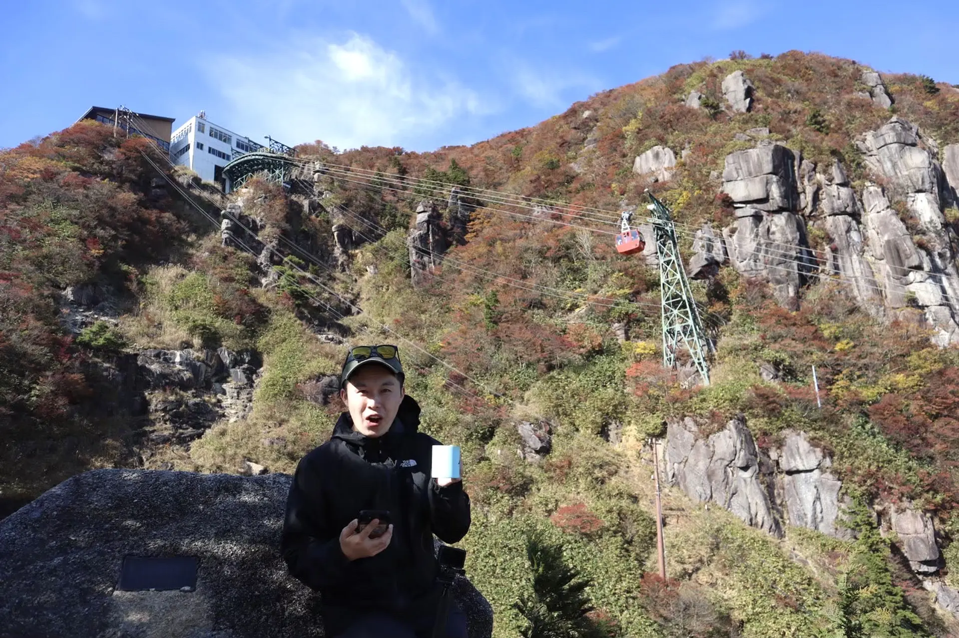 6合目付近にある映えスポットです。谷間からお隣の鎌ヶ岳とロープウェイを眺めることができます。