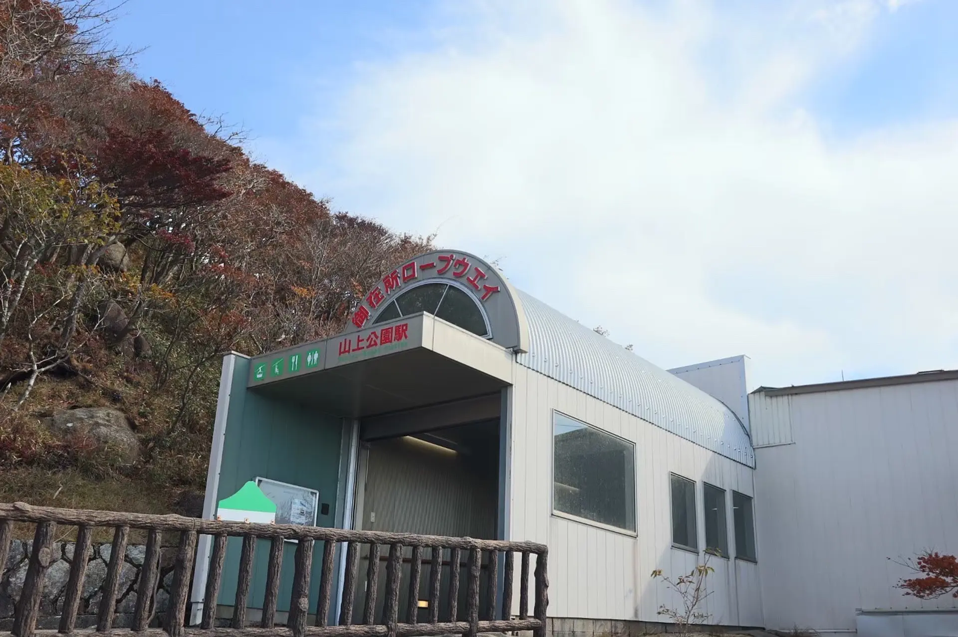 山頂付近にロープウェイの駅があります。お土産なども売っていますので、是非、立ち寄ってみましょう。レストランもありますので、ここでお昼ご飯を食べるのも良いですね。名物のカレーうどんは絶品です!