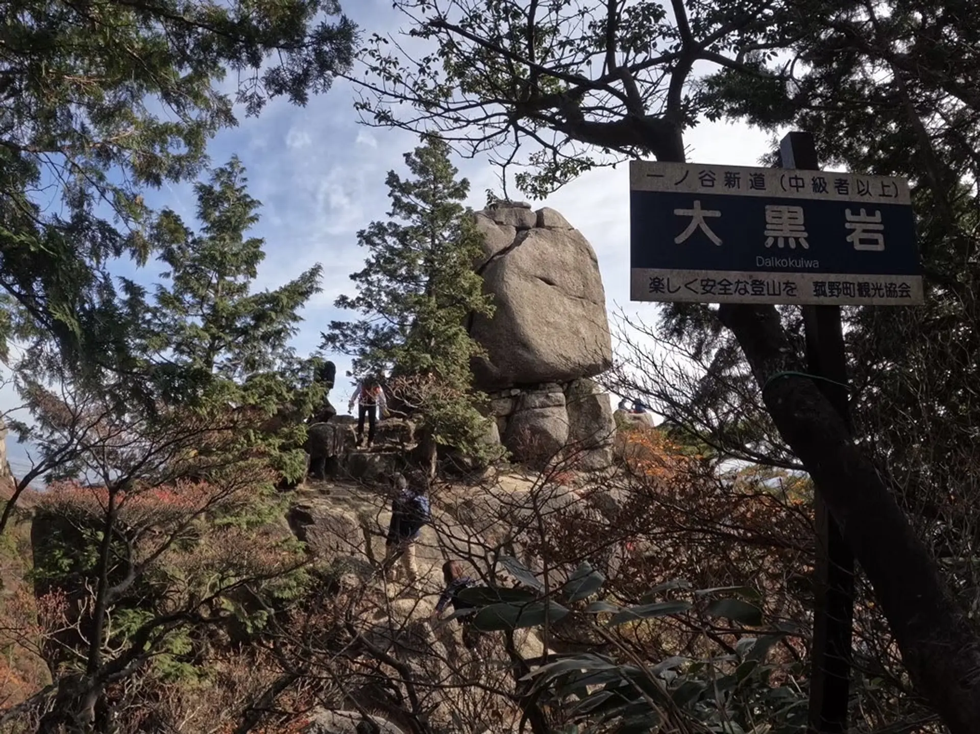 山頂に行く前に「大黒岩」と言う巨岩に寄り道するのがオススメです。大黒様が岩の上に座っているように見えることから「大黒岩」と呼ばれるようになったそうです。