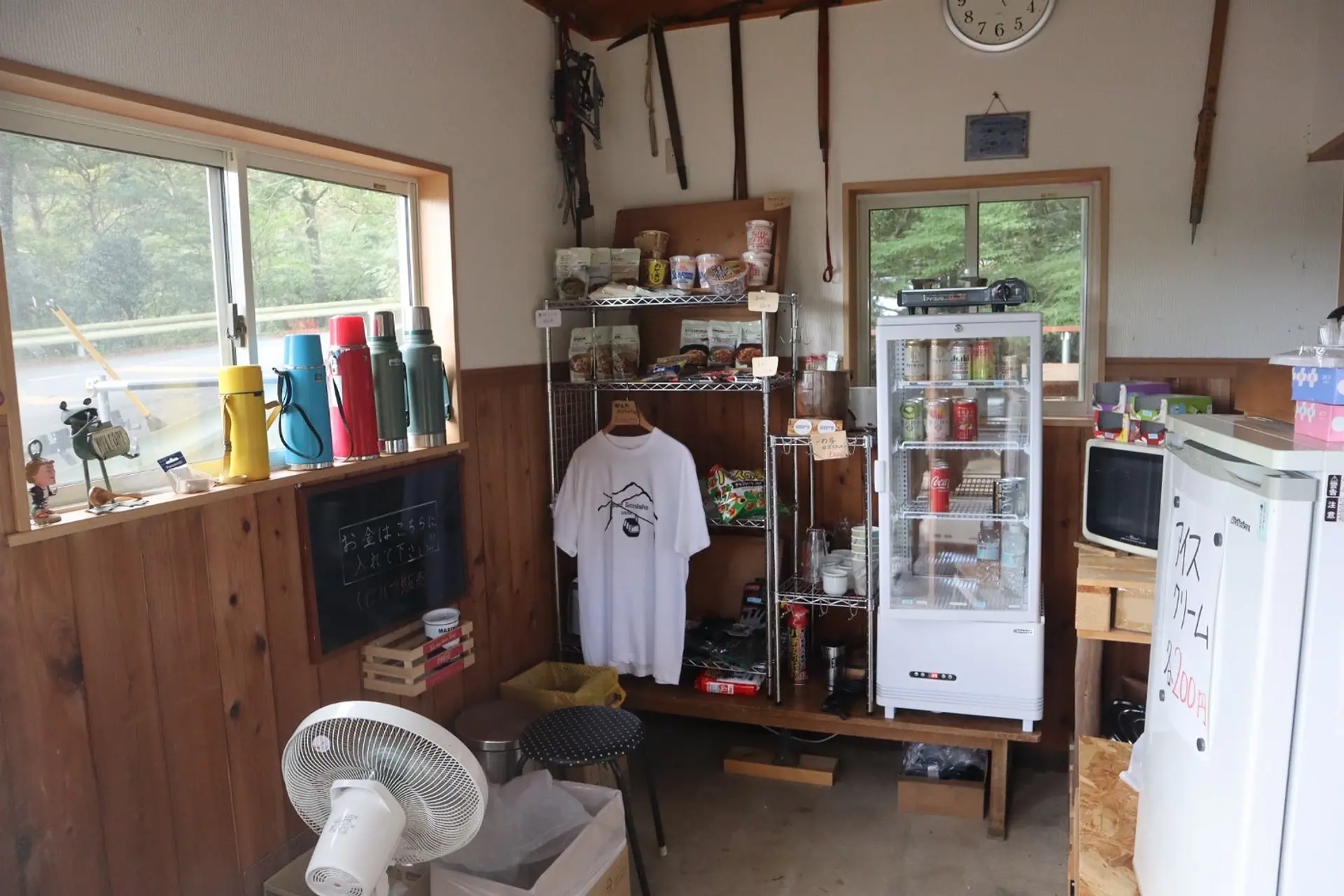 まずは売店のご紹介です。登山に欠かせないドリンクや軽食、インスタント食品をはじめ、アイスクリームや一の谷山荘限定Tシャツなど、登山客のお腹と心を満たす、気遣いたっぷりな売店になっています!暑い時期にはかき氷も売っています。かき氷を食べて火照った体をクールダウン!