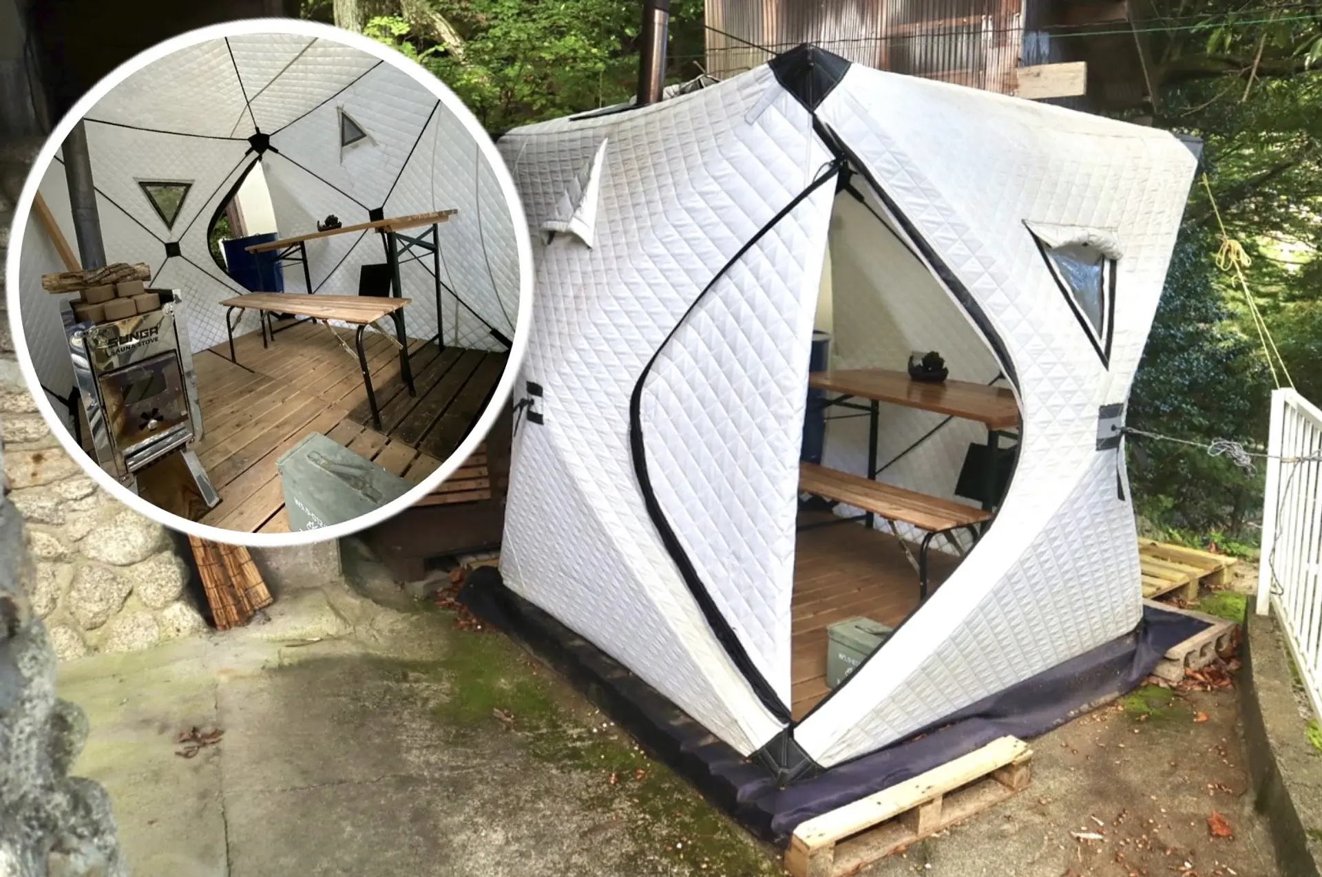 一の谷山荘に来たら絶対に堪能いただきたい、こちらのレンタルテントサウナ1号機!三重県で山の中でサウナができるのは数少ないのではないでしょうか。しっかり汗をかいた後は、ドラム缶とバスタブの水風呂で”ととのい”ましょう!