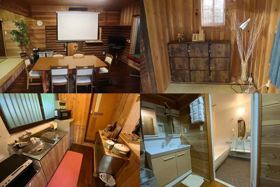 設備も充実しています。大きなプロジェクターがあり、大画面でゲームを楽しめたり、キッチンやトイレ、バスルームも広々としていて、とても快適です!流しそうめんの機械、炊飯器、大きな土鍋まで揃っていて、豊富な調理器具で好きな料理を楽しめます!