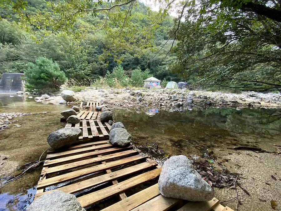 なんと!山荘下に流れる川辺でもサウナが楽しめます!オーナーに案内していただき、ついて行くと・・・川のその先で、サウナ2号機・3号機をレンタルすることができるのです!