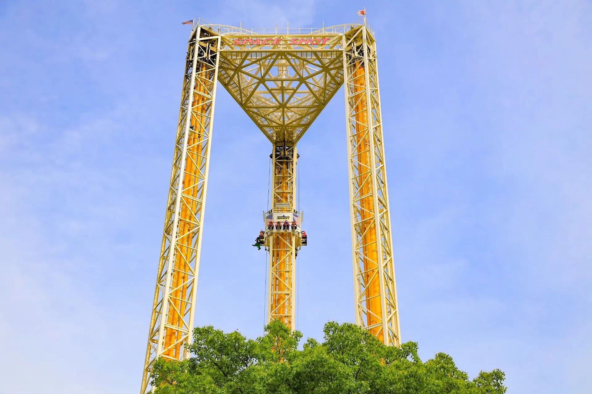 カウントダウンで頂上へ一気に打ち上がる日本唯一の3連スペースショット。地上75mからの光景をあなたは目撃できるか?!