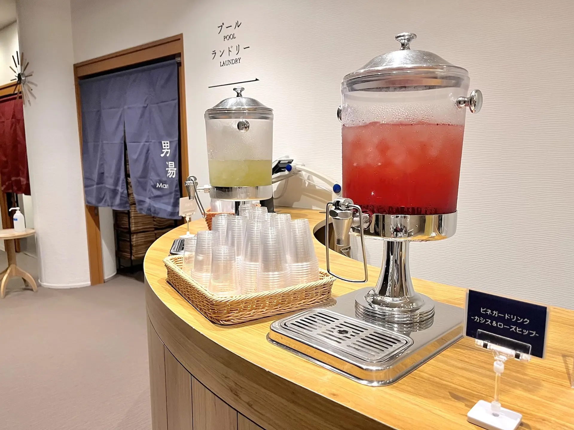 大浴場の入口にある「湯上がりサービス処」でもドリンクのおもてなしがあり、ビネガードリンクや生ビールが飲み放題です。