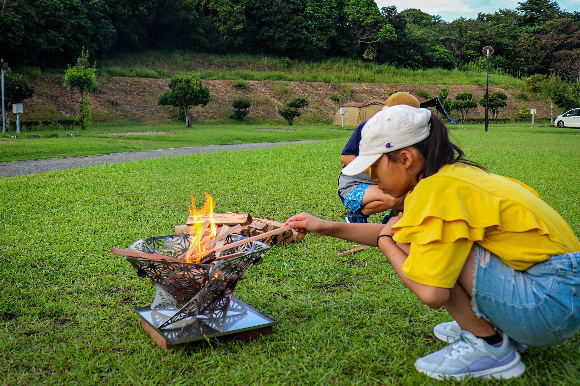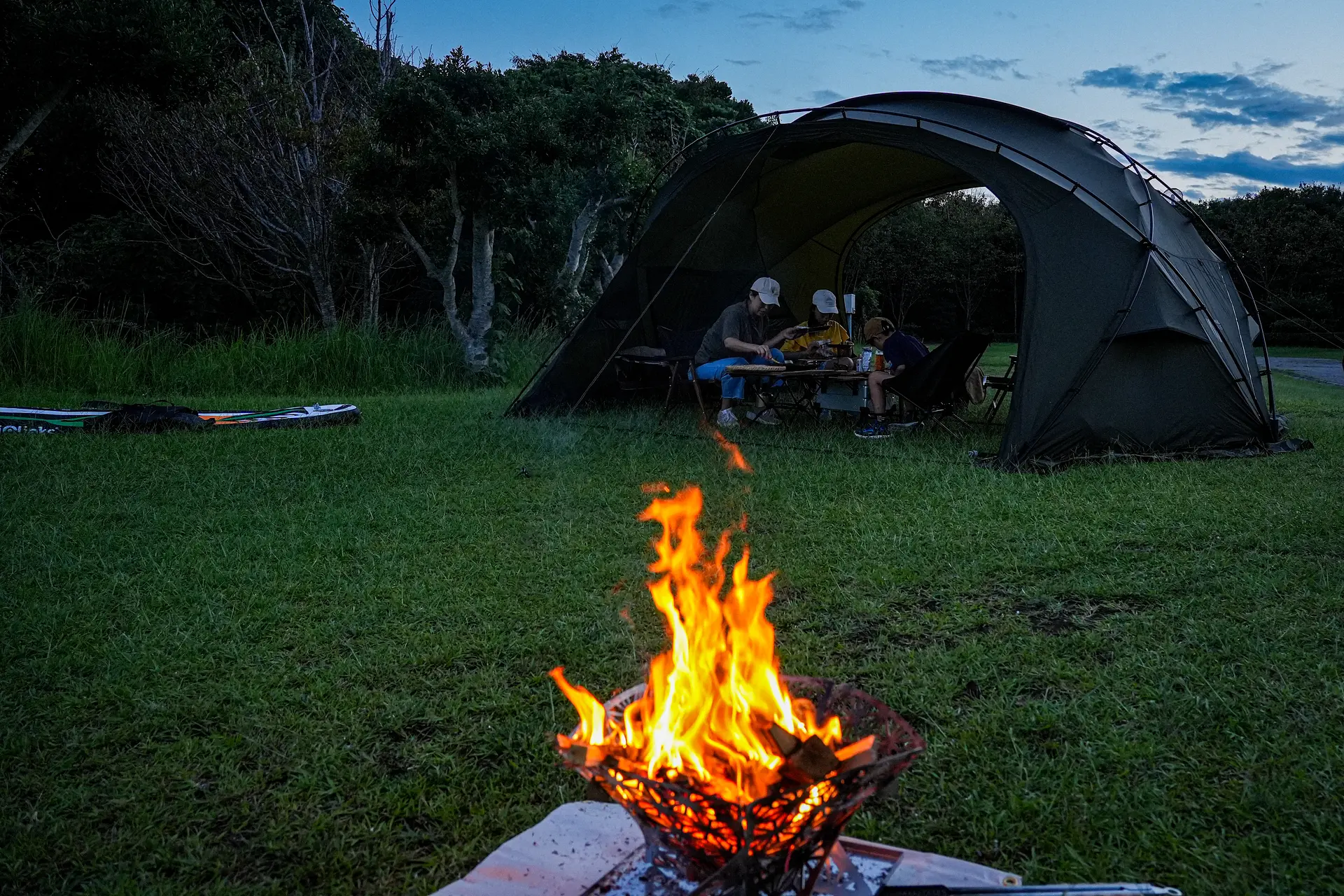 風呂上がりに心地いい風を浴びながらたき火。癒されました。