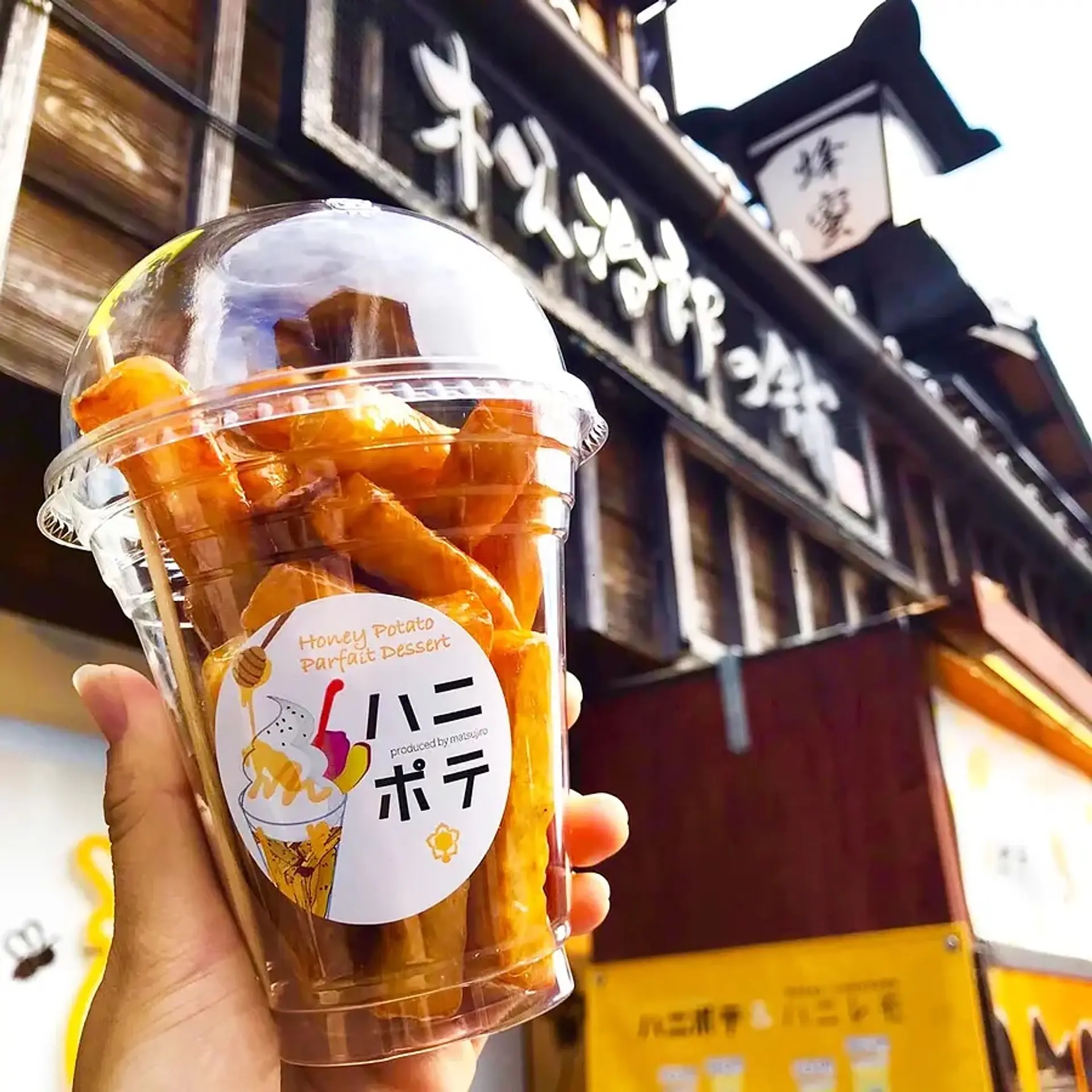 店舗前の屋台で販売されている「ハニポテ®️」は、伊勢おはらい町で行列を作る大人気商品です。