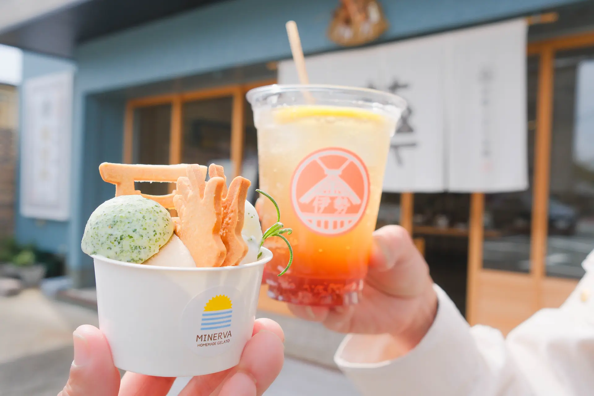 伊勢神宮内宮近くの伊勢くすり本舗に併設されたカフェコーナーでは、和漢植物など10種配合した「萬金コーラ」や、ジェラート( 萬金/岩戸の塩/伊勢茶 )がいただけます。