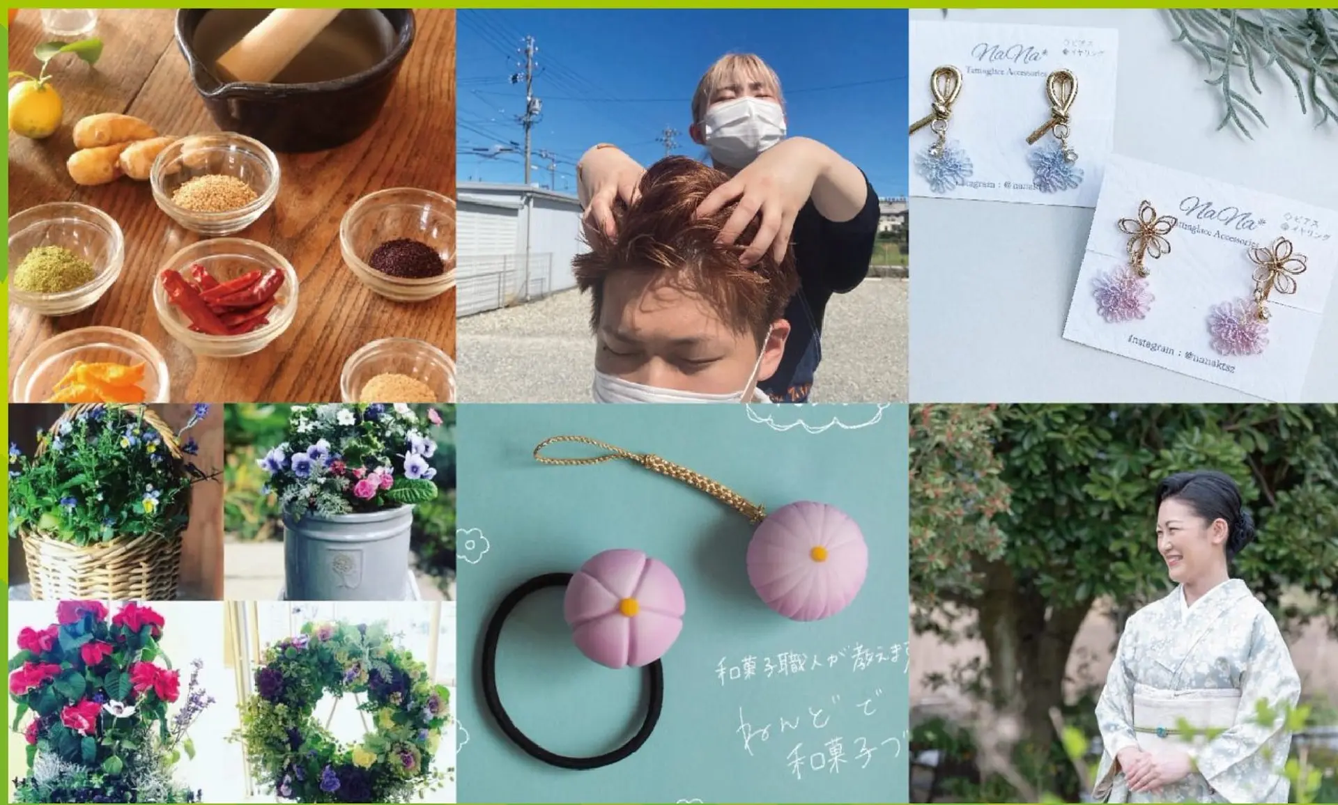 こもガク塾は全て、メイン会場(菰野町体育センター)で開催します。 町民全員が先生になって、会場内でワークショップや教室、展示や販売を開催します。寄せ植えや着物体験、パーソナルカラー体験、オリジナル七味づくり、キーホルダーづくりなど、いろんな体験や学びができます。