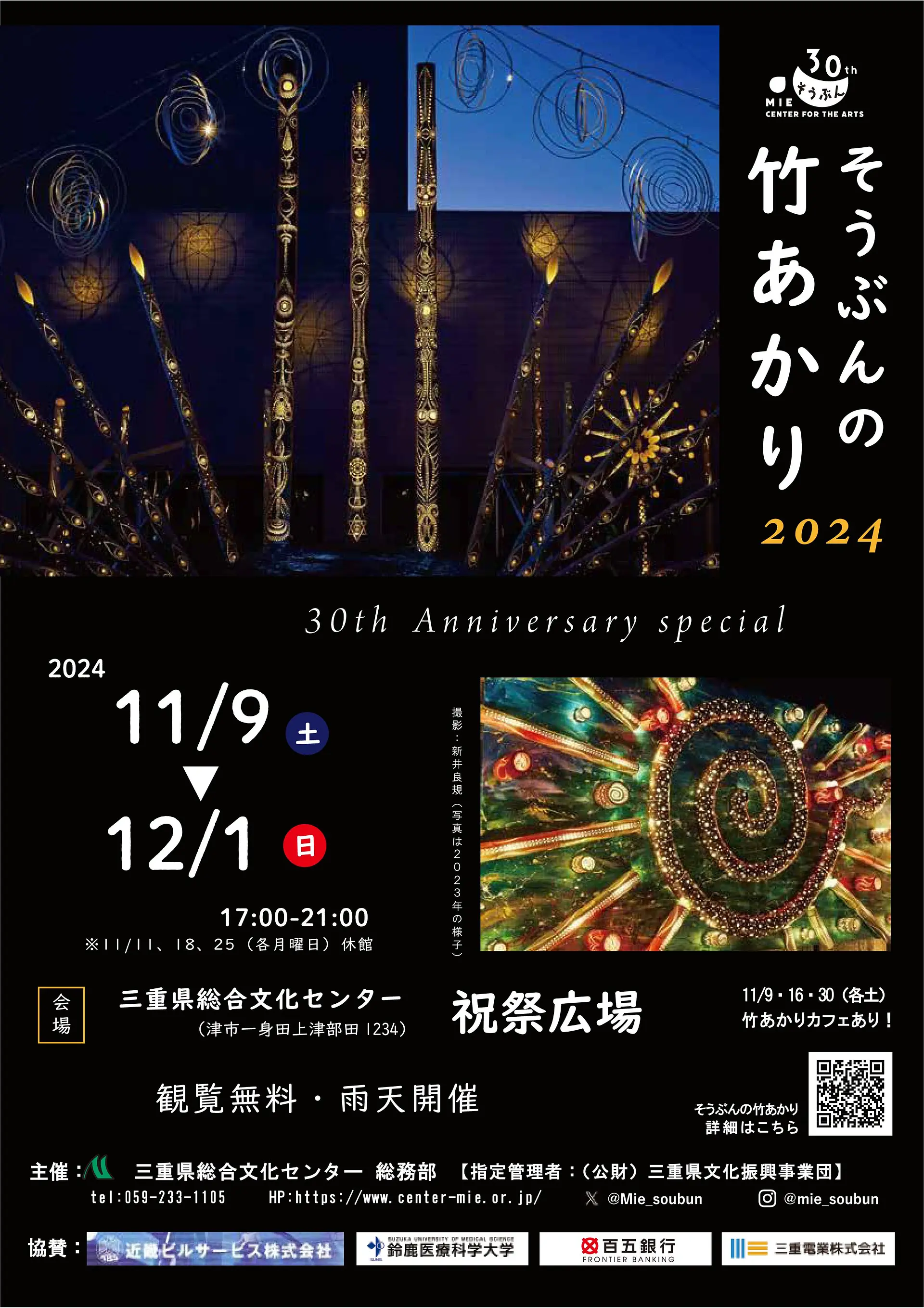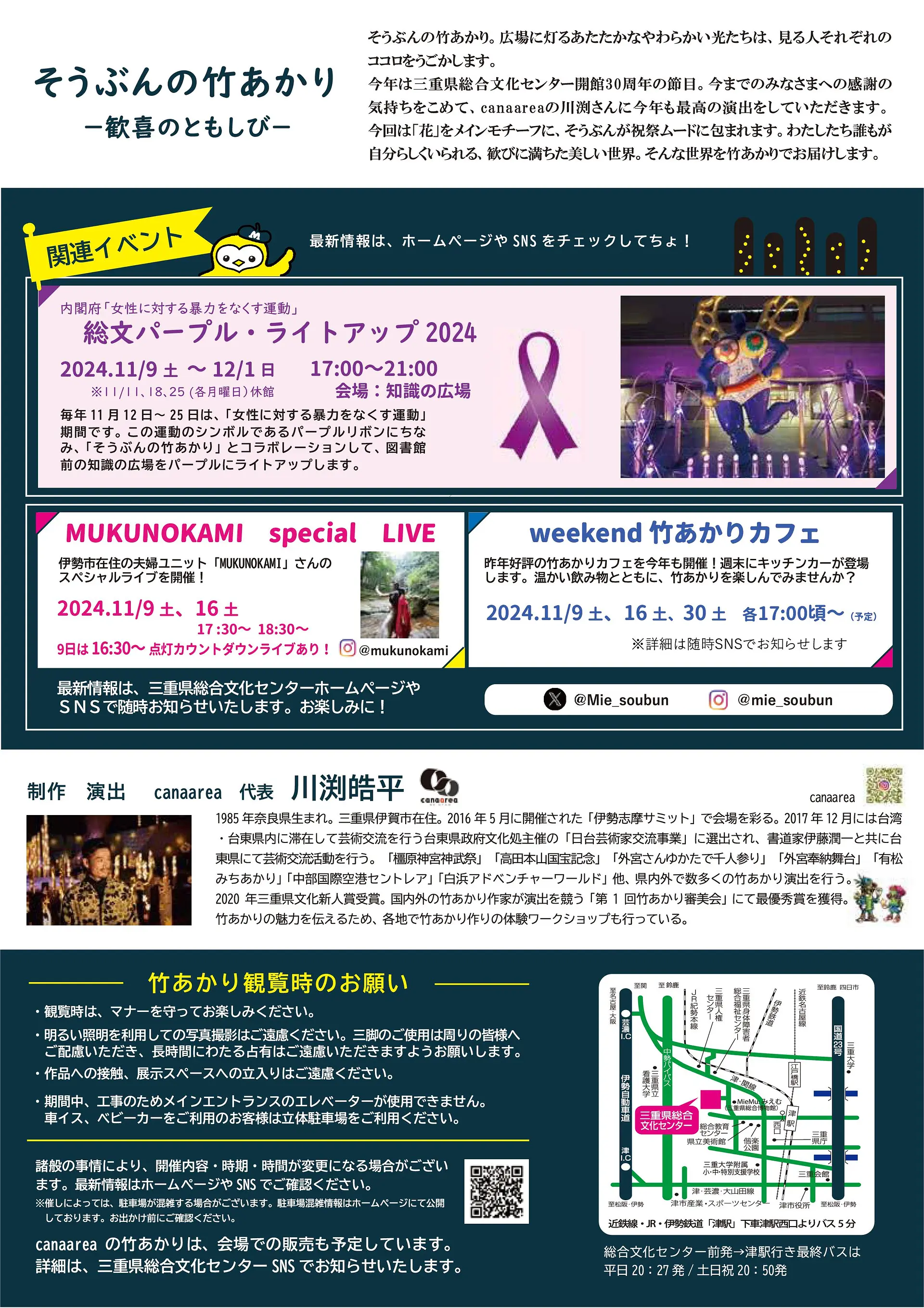 「そうぶんの竹あかり」の詳細情報は三重県総合文化センターHPでご確認いただけます。