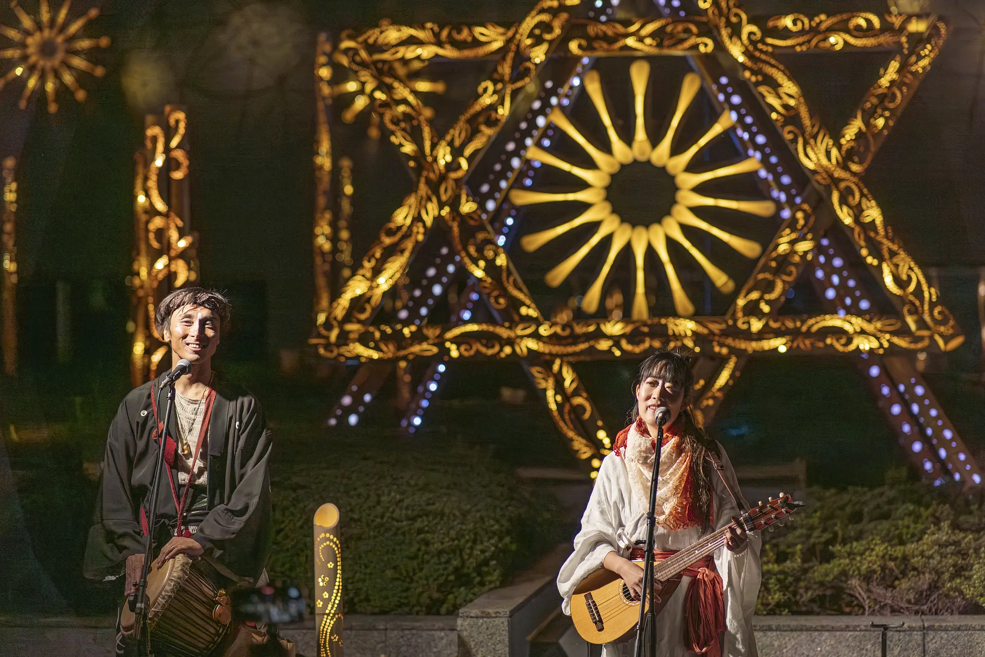 伊勢市を拠点に活動する、夫婦音楽ユニットMUKUNOKAMI(ムクノカミ)さんの生演奏が竹あかりを彩ります!今年の竹あかりの雰囲気にぴったりなMUKUNOKAMIさんのライブを聞きながら、癒しのひとときを過ごしてみませんか。
