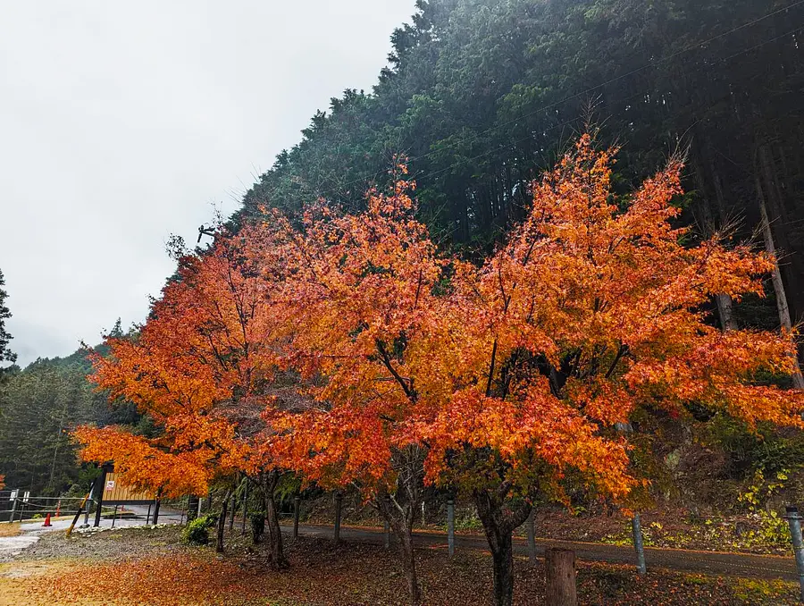 フリーサイトで紅葉キャンプを楽しみたいなら、ぜひ道路側を選んでください!こちらには大きな紅葉の木があり、夏は木陰で過ごせますし、秋は真っ赤な紅葉を眺めながらお洒落なキャンプができますよ!