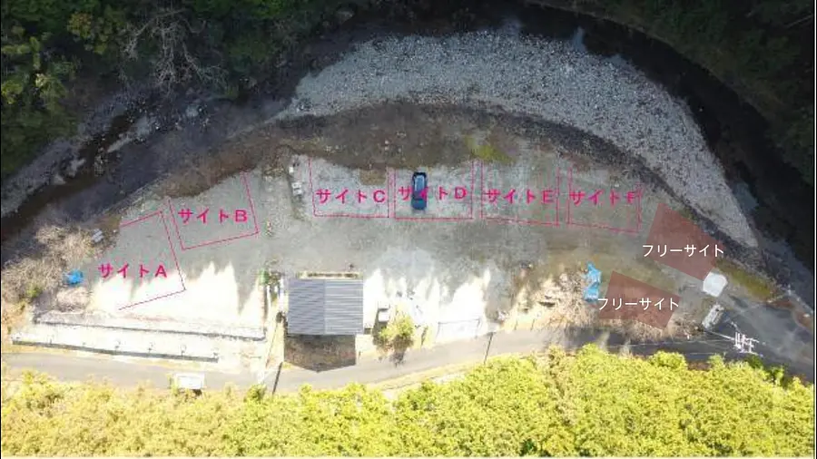 区画サイトEとFは、静かに川や自然を眺めながら過ごしたい方にオススメです。