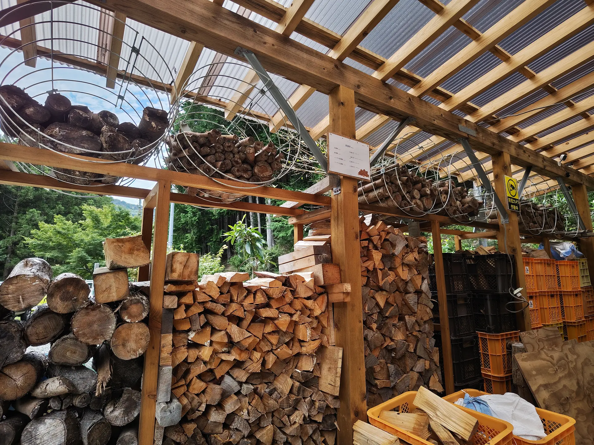 センターハウスでは、薪も販売しています。針葉樹も広葉樹もあります。薪を忘れた時や焚火中に薪が減ってきた時は、ぜひご利用ください。
