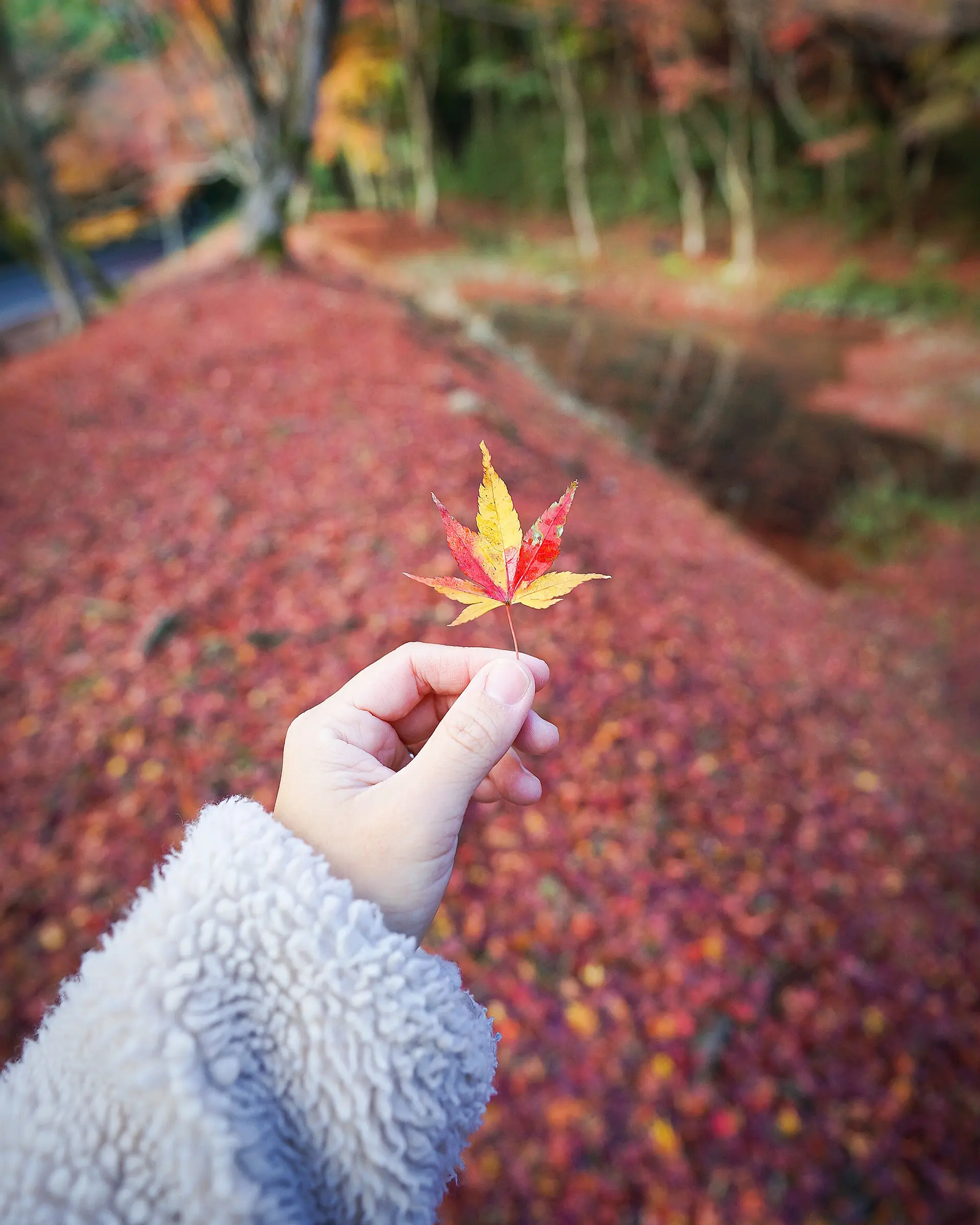 人の少ない雨の日や 少し風がある日は、凛とした空気の中でヒラヒラ舞い落ちる葉と、紅葉の絨毯をお楽しみいただけます♪