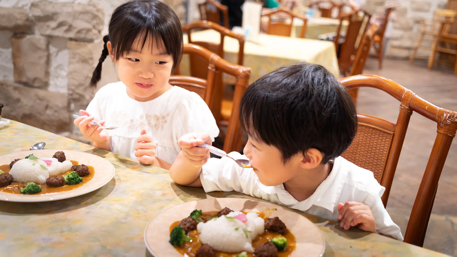 食べて崩すのがもったいない程のコチラのカレーは、子供達が食べやすいように甘口を選択することができます。