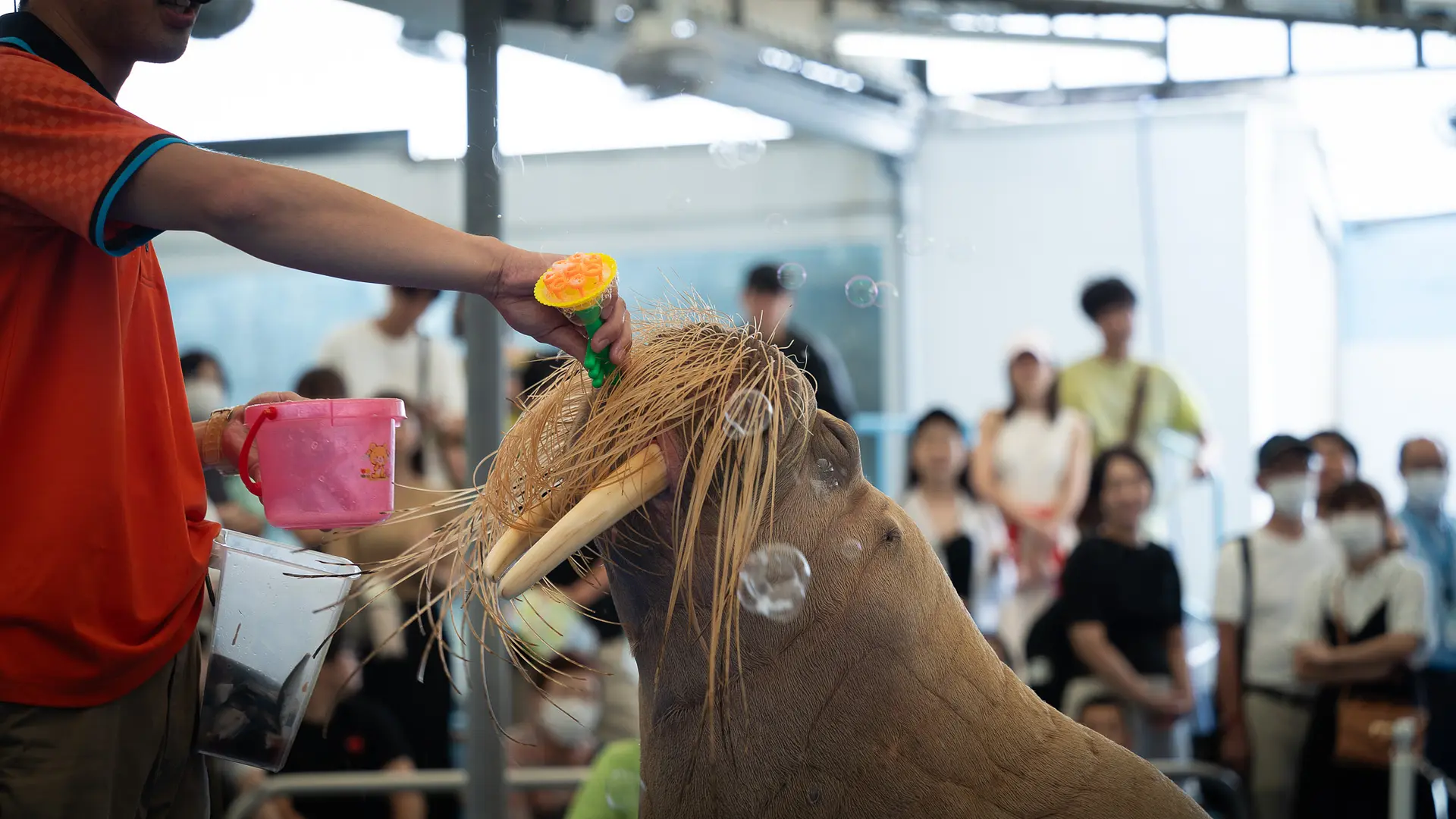 セイウチは驚くほど賢く、身振り手振りだけでなく声も理解してパフォーマンスをしてくれるため、私たちも鳥羽水族館に行くたびに何度も繰り返し見てしまいます。