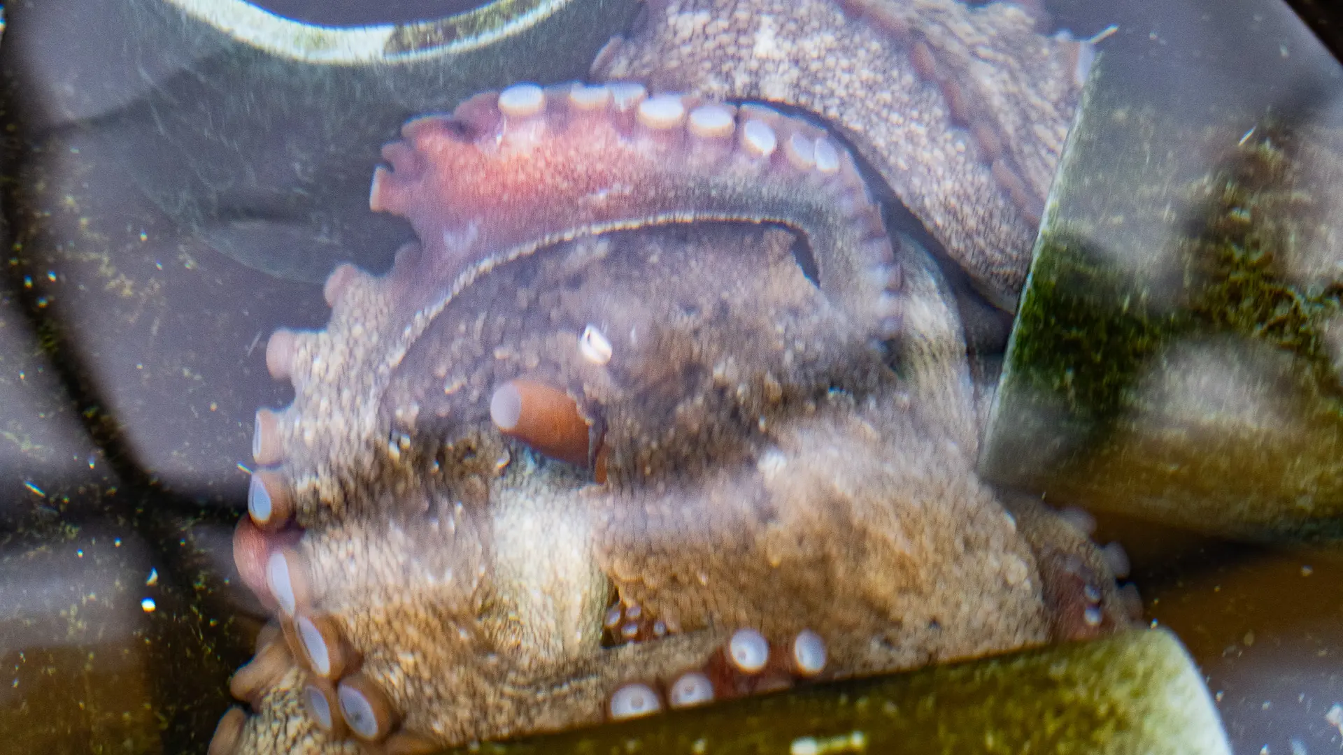 水槽にはお魚だけでなく写真のようなタコも飼育されており、独特の触り心地を味わうことも。