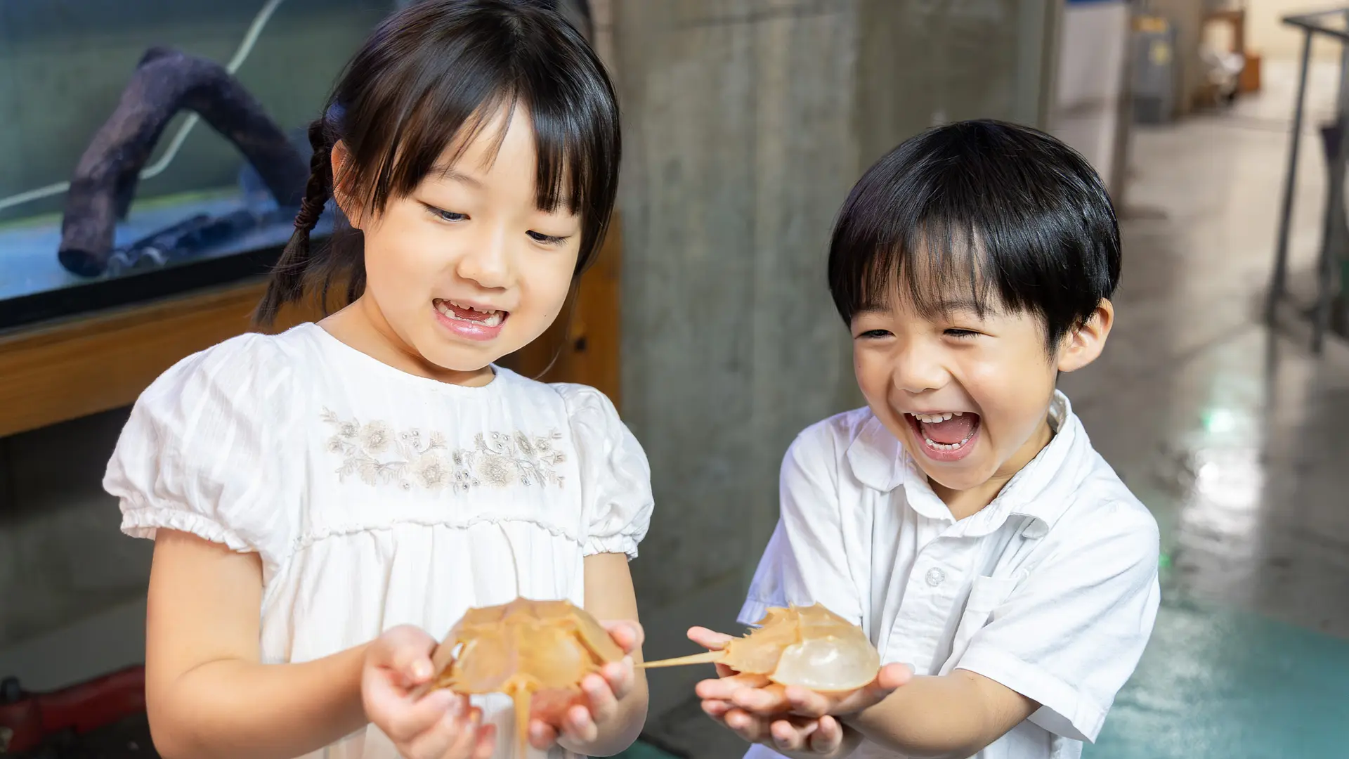 カブトガニの抜け殻やサメの卵を実際に手にとることも!