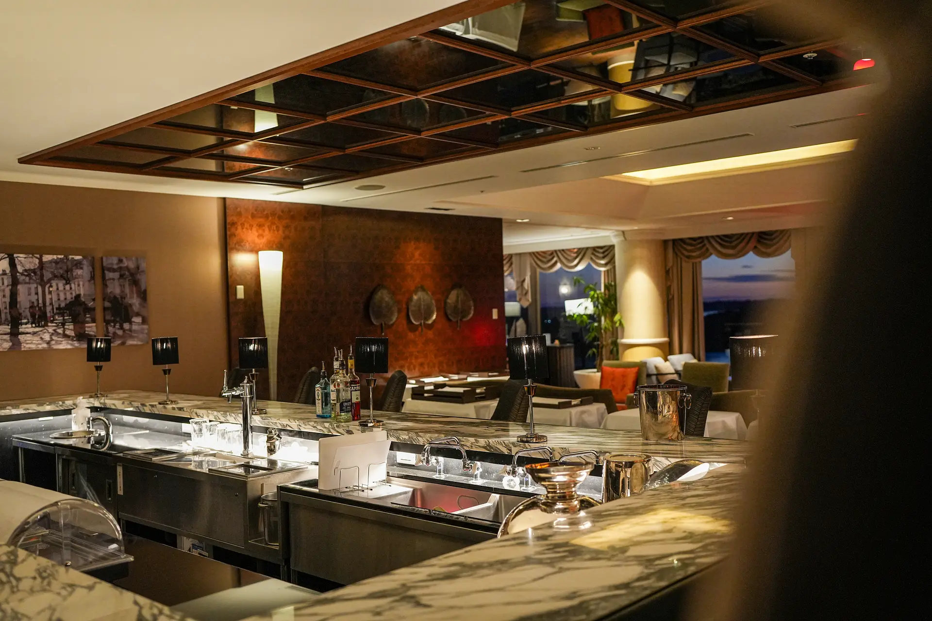 ディナーまでの時間、最上階にあるラウンジで過ごします。落ち着いた大人の空間が心地良い。