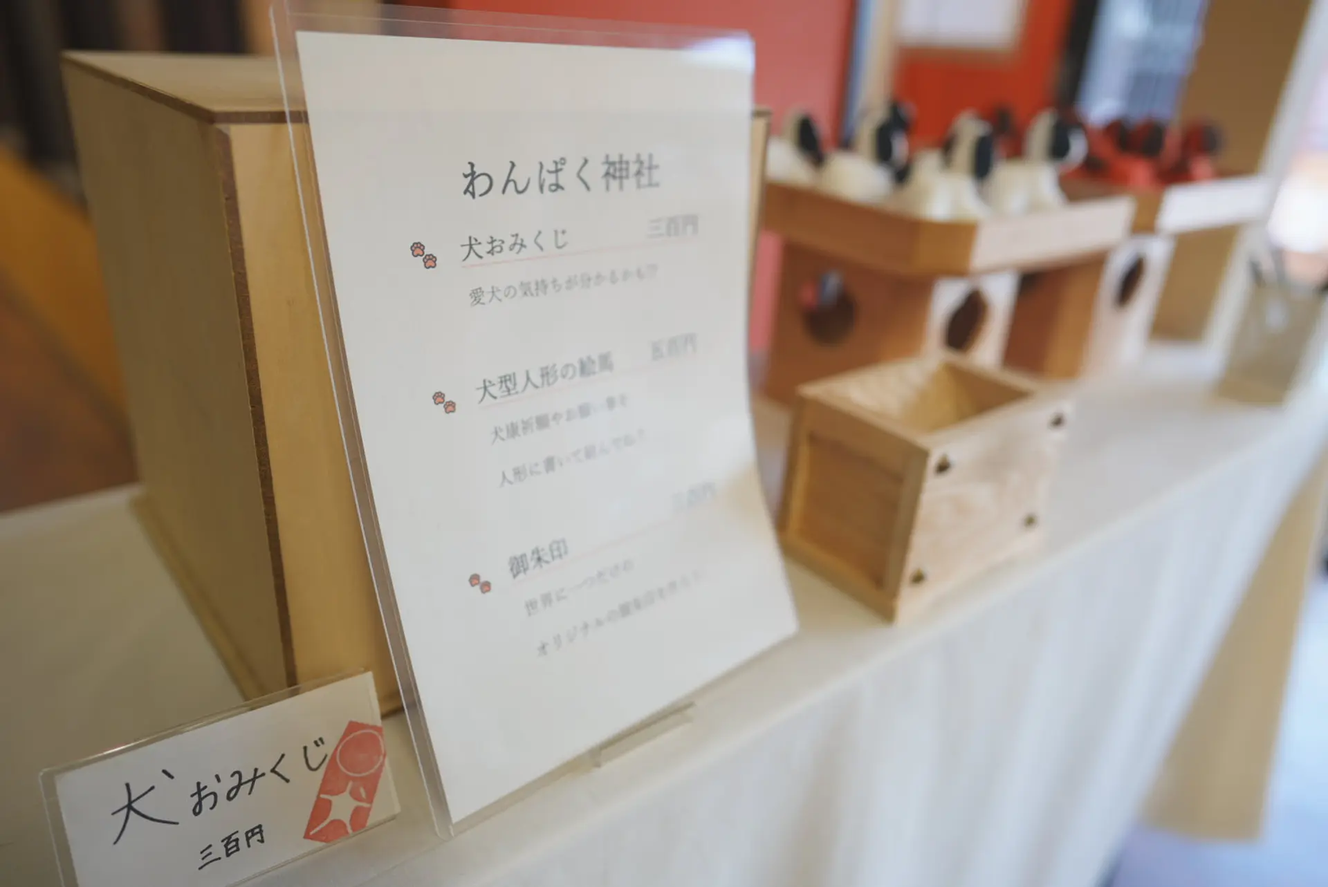 また、わんぱく神社には犬おみくじや犬型人形の絵馬、オリジナルの御朱印サービスもあります。