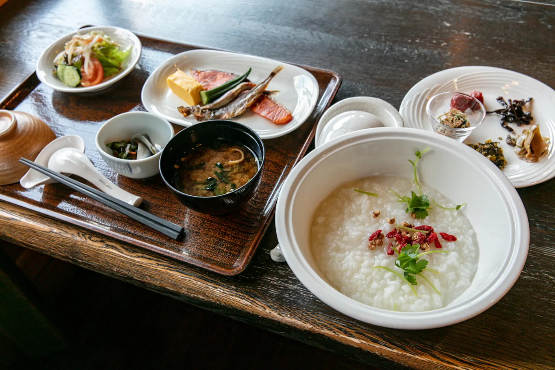 たっぷりサイズの器に入ったお粥を何度もおかわりして、元気な朝のスタートです♪