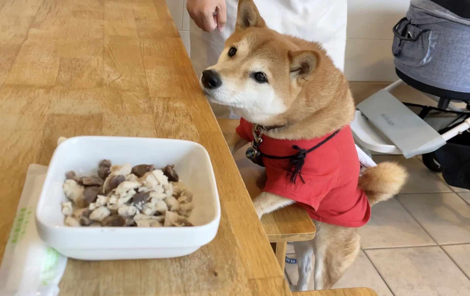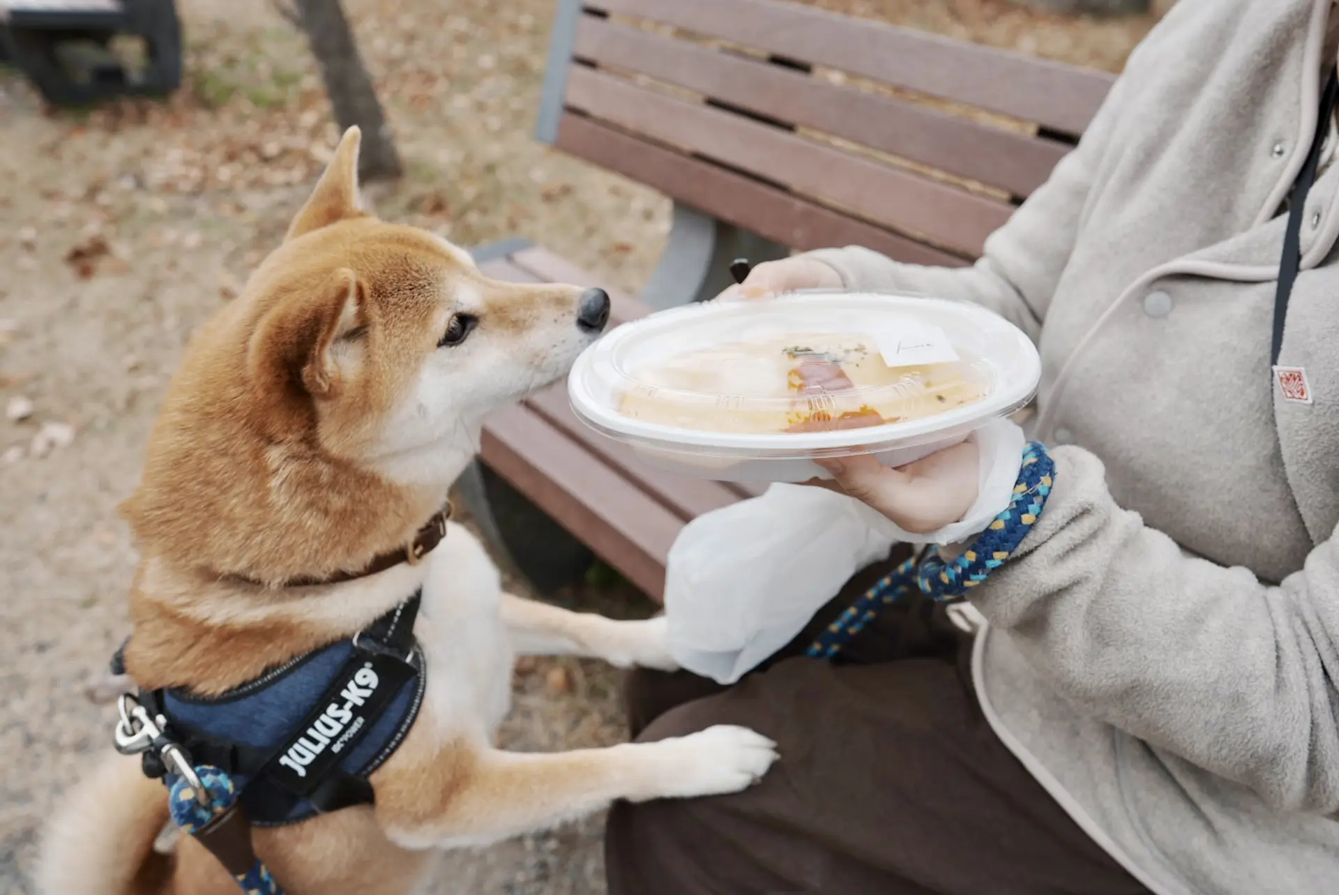 ジャックゲインさんではワンちゃん用メニューも豊富で、りんご郎には人気メニューの「チキチキ」(税込583円)をオーダー。