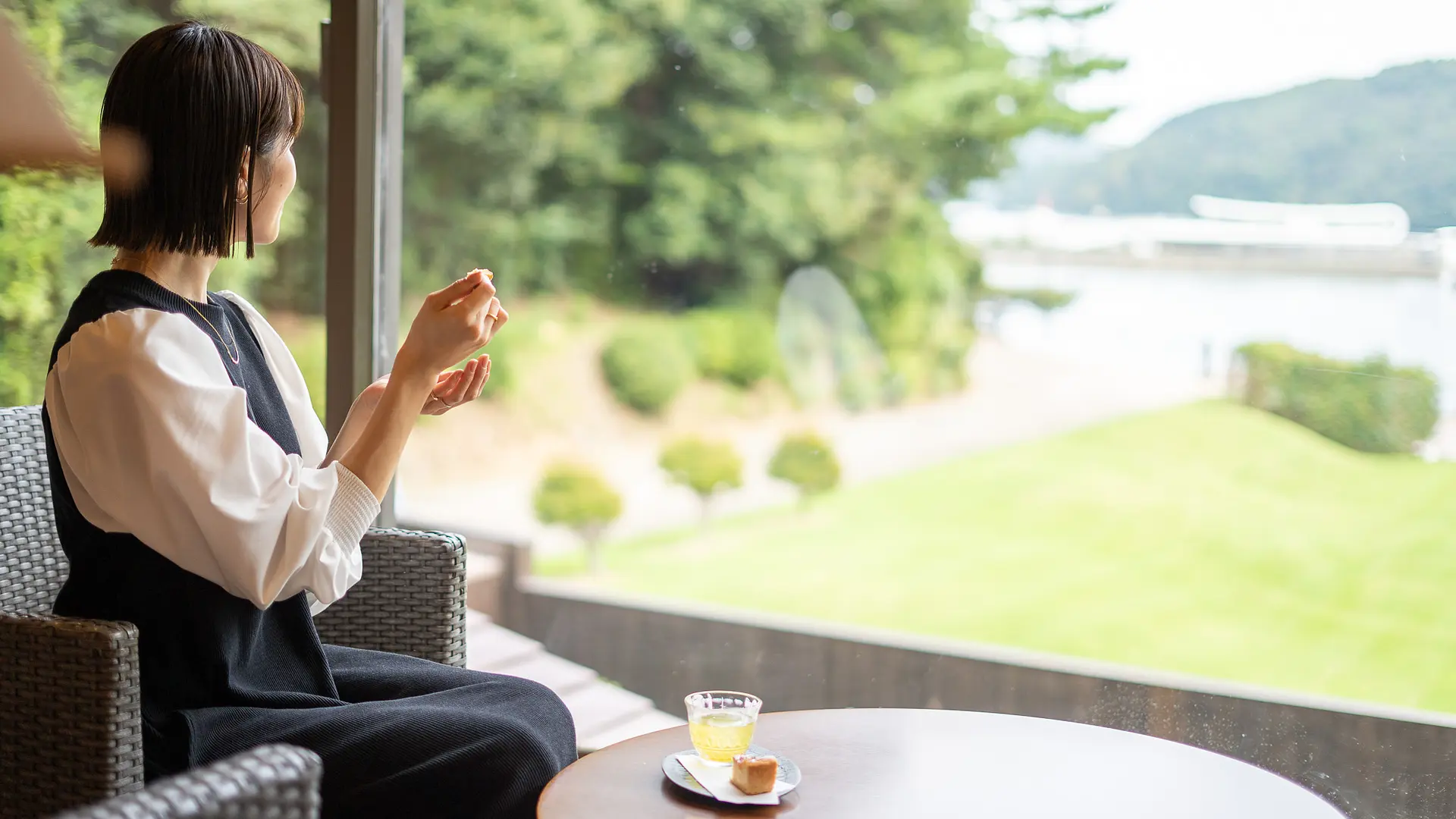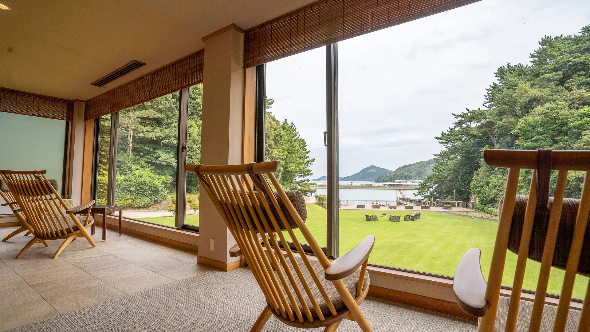 鳥羽湾の景色と緑豊かな庭園を眺めながら一息。