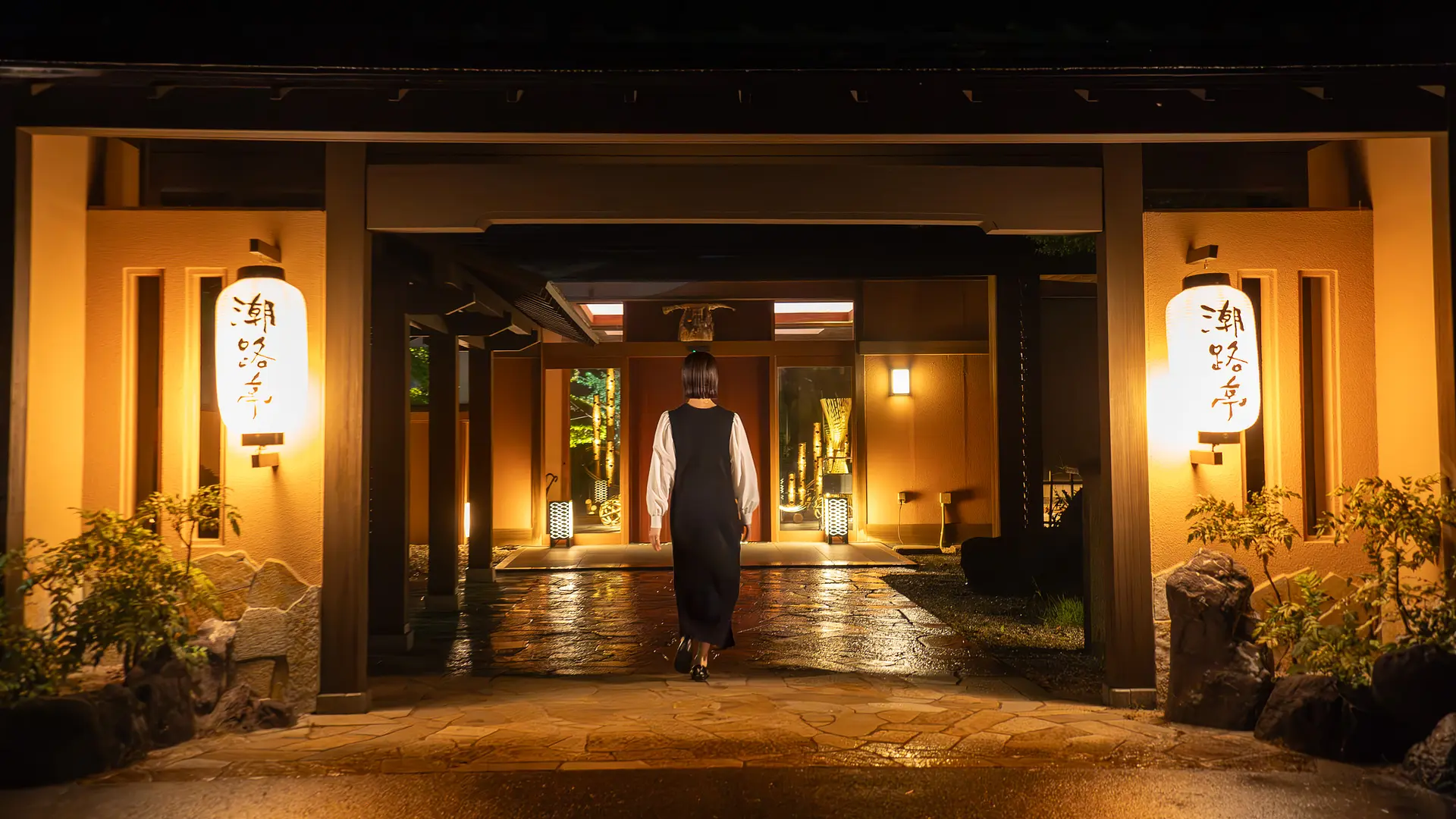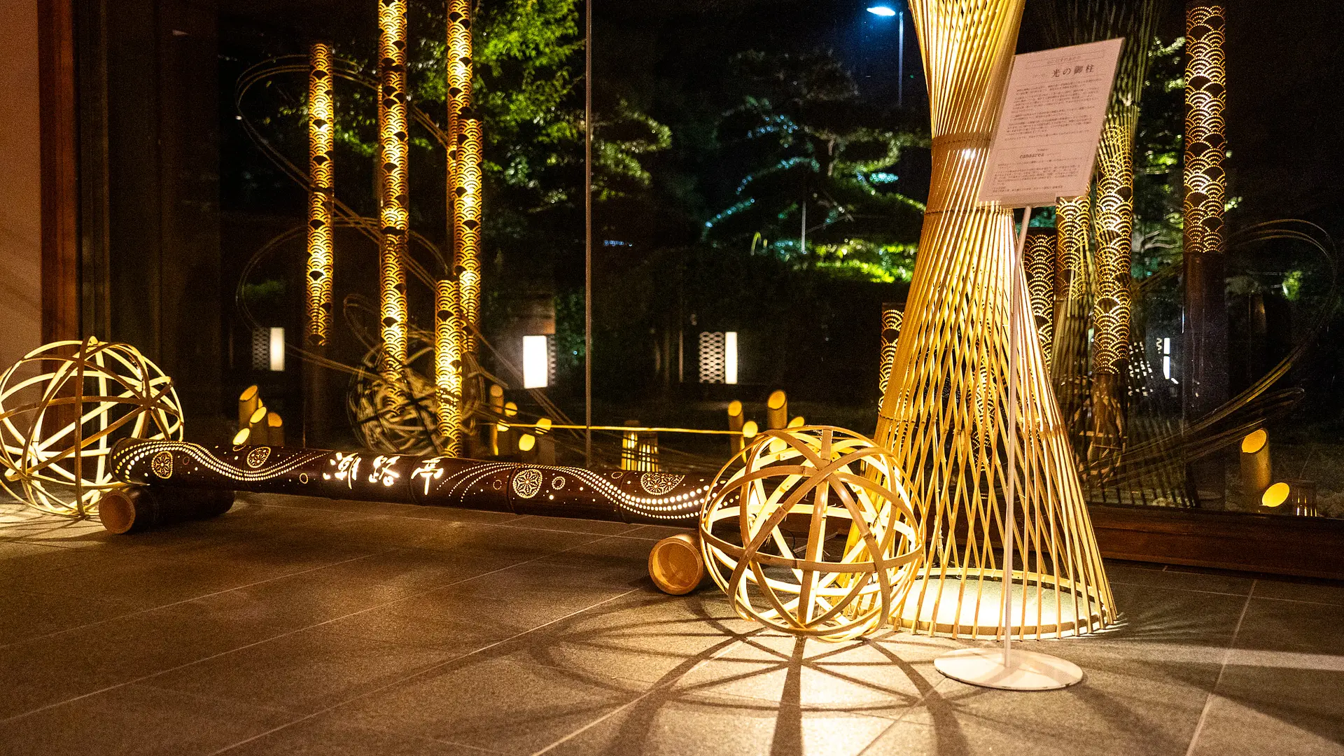 夜になると、エントランスでは竹あかりが宿泊客を迎えてくれます。