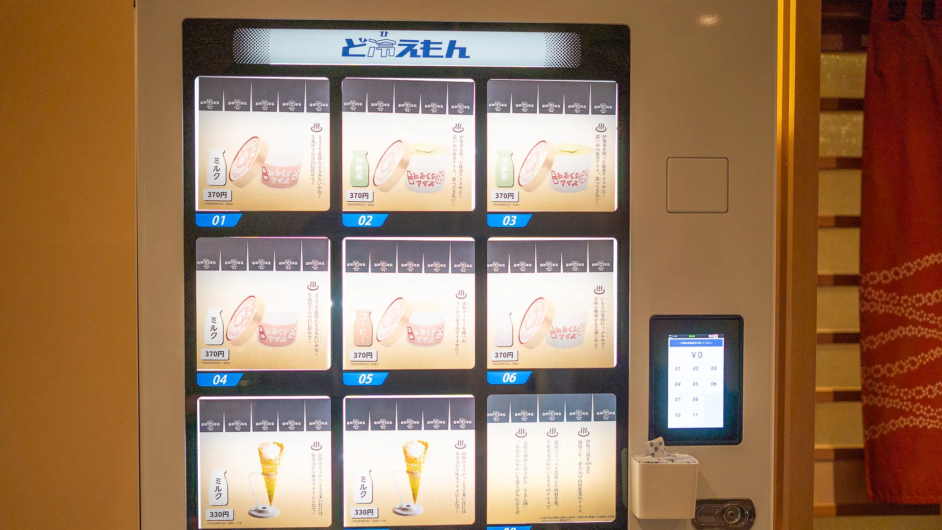 個人的に嬉しかったのは、お風呂の前に設置された「山村乳業」のアイスが販売されている自動販売機です。