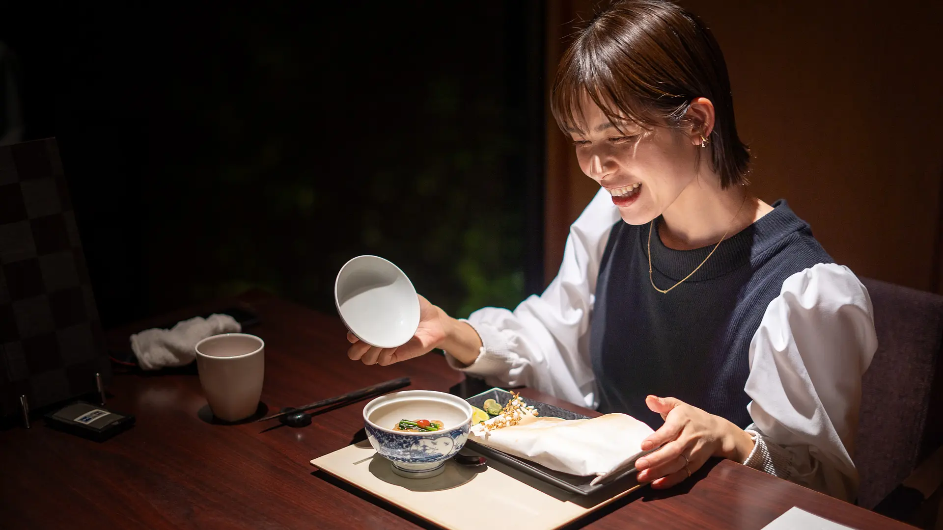こちらの食事処は全席半個室となっており、プライベートな空間で絶品料理を心ゆくまで楽しむことができました。