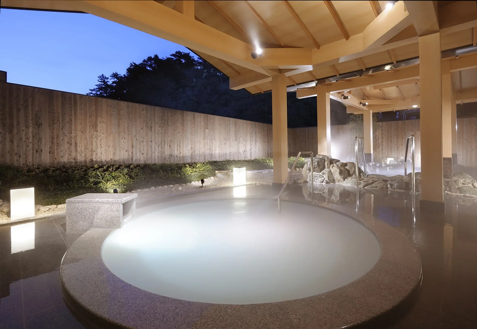 パールオーロラ風呂は露天風呂となっており、真珠成分によりキラキラと煌めくお湯で疲れを癒すことが。