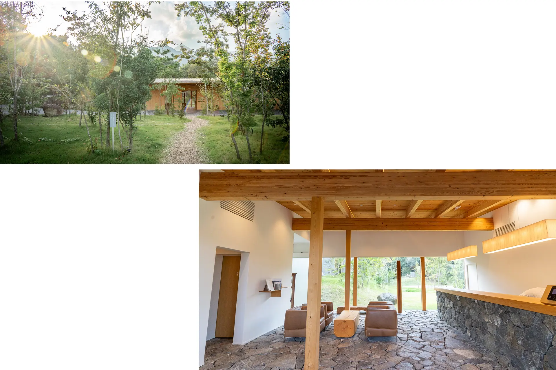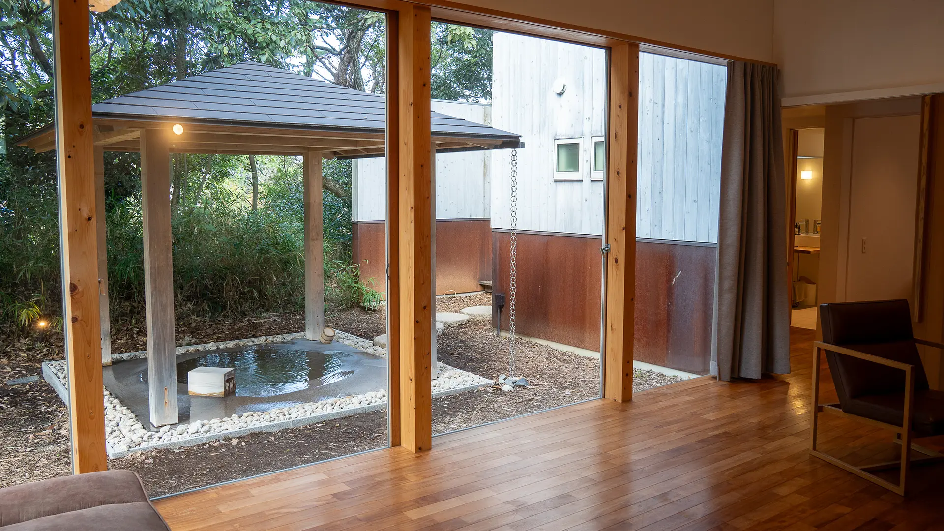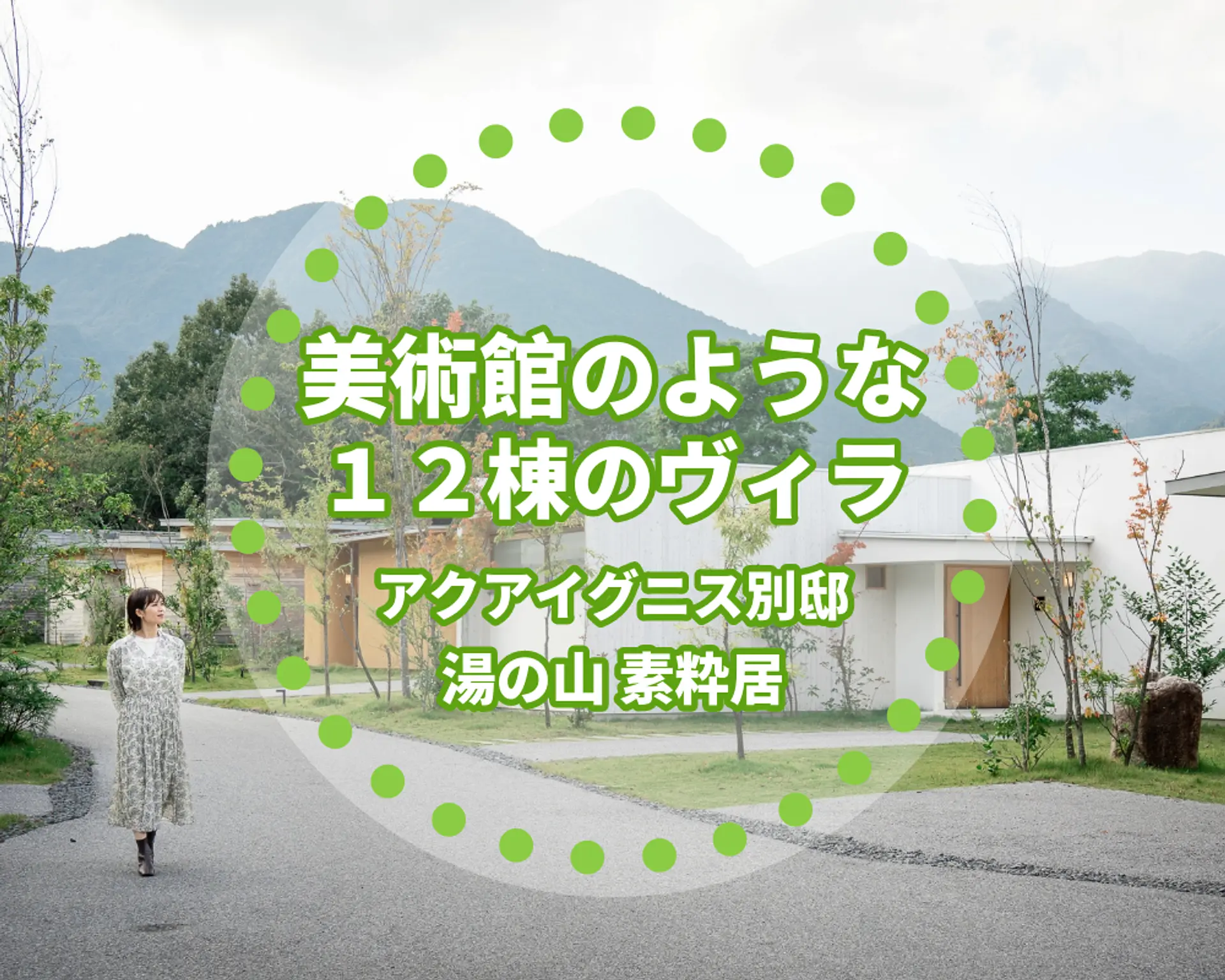 木立の中に佇む美術館のようなヴィラ。アクアイグニス別邸「湯の山 素粋居」