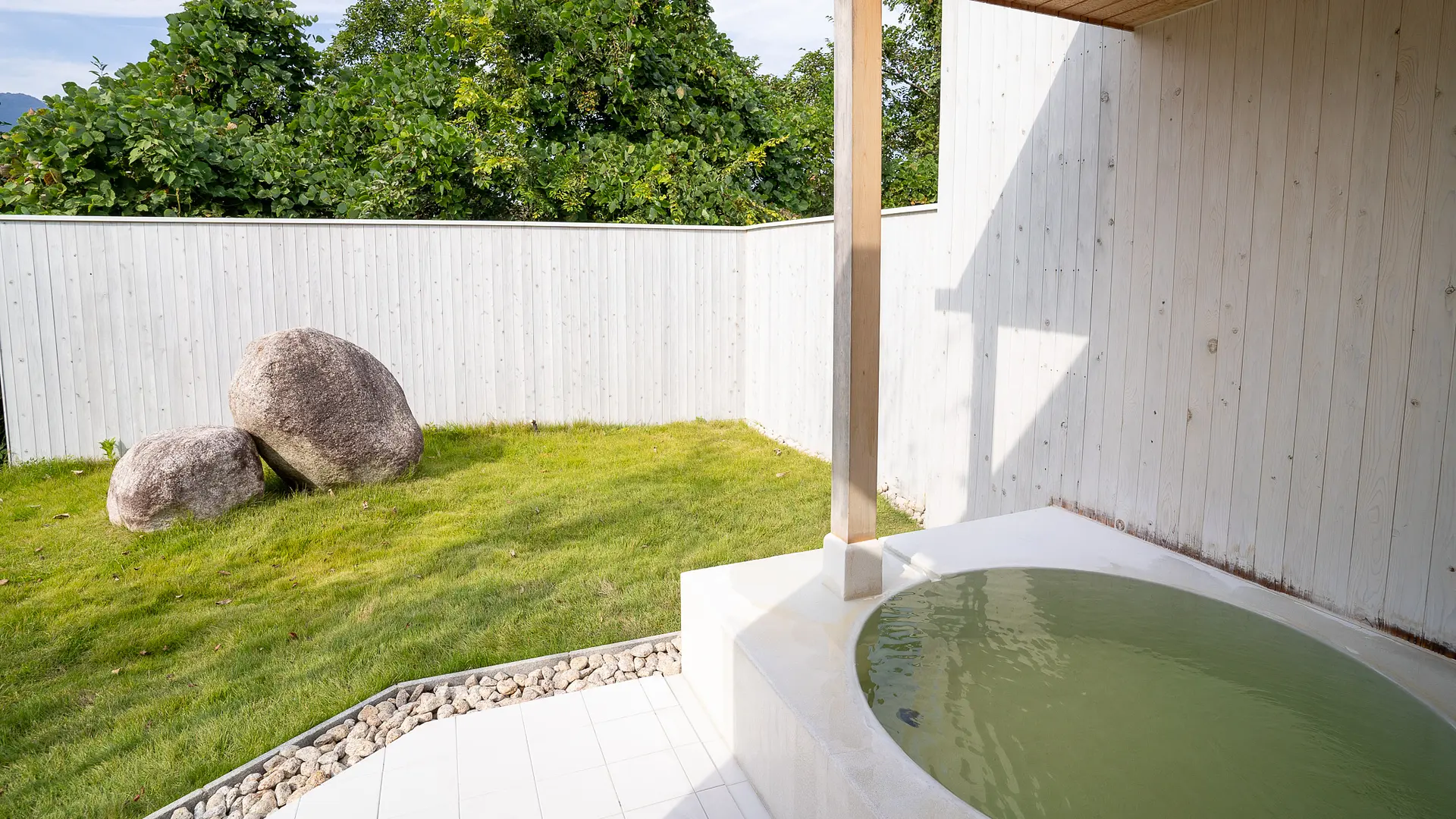 湯の山温泉の麓にある素粋居では、すべてのヴィラに露天風呂が備え付けられています。