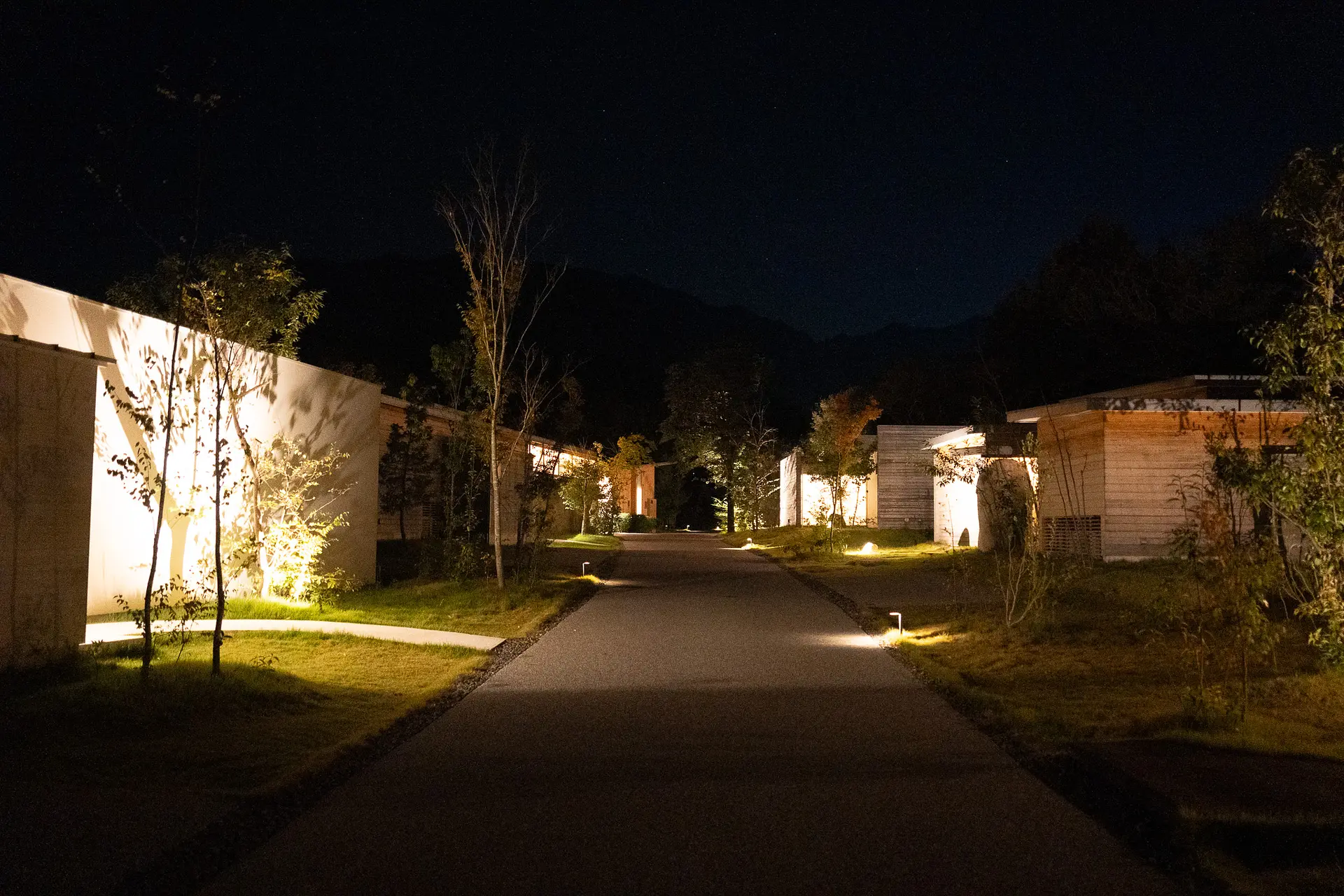 個人的にとても魅力的に感じたのは、夜になると木々やヴィラが幻想的な灯りに照らされることによる静かで落ち着いた佇まいです。