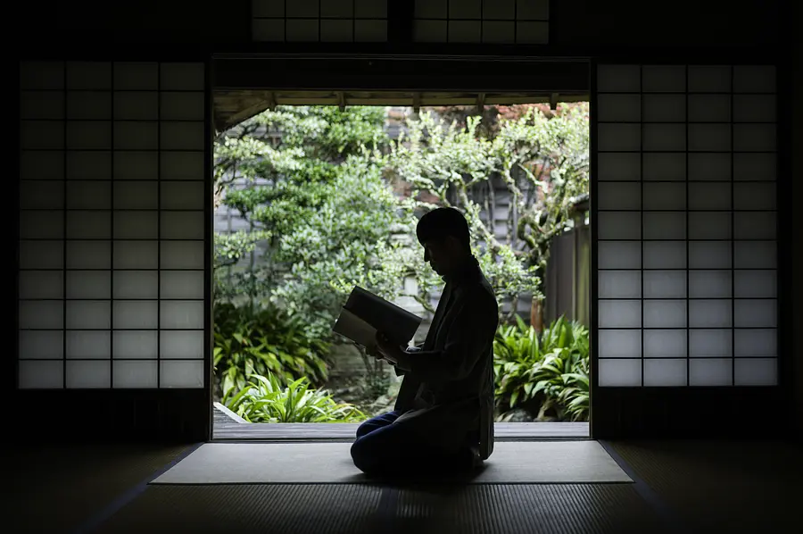 本居宣長が生涯の大半を過ごした旧宅「鈴屋(すずのや)」にて、「宣長さんもこうして書物を読んだのかな」と本を手に取る浅田さん。