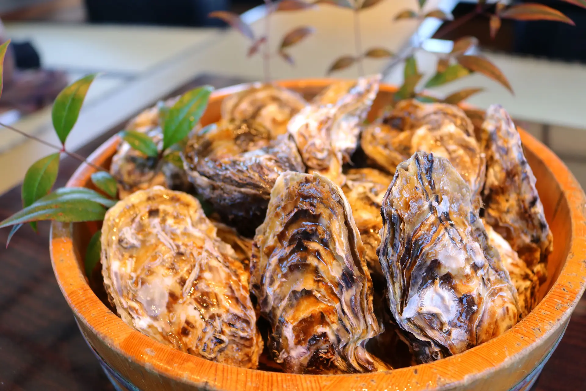 牡蠣の旬は冬!屋形船おきたさんでは、ちょうど今が旬の鳥羽のブランド牡蠣「桃こまち」をいただくことができます。