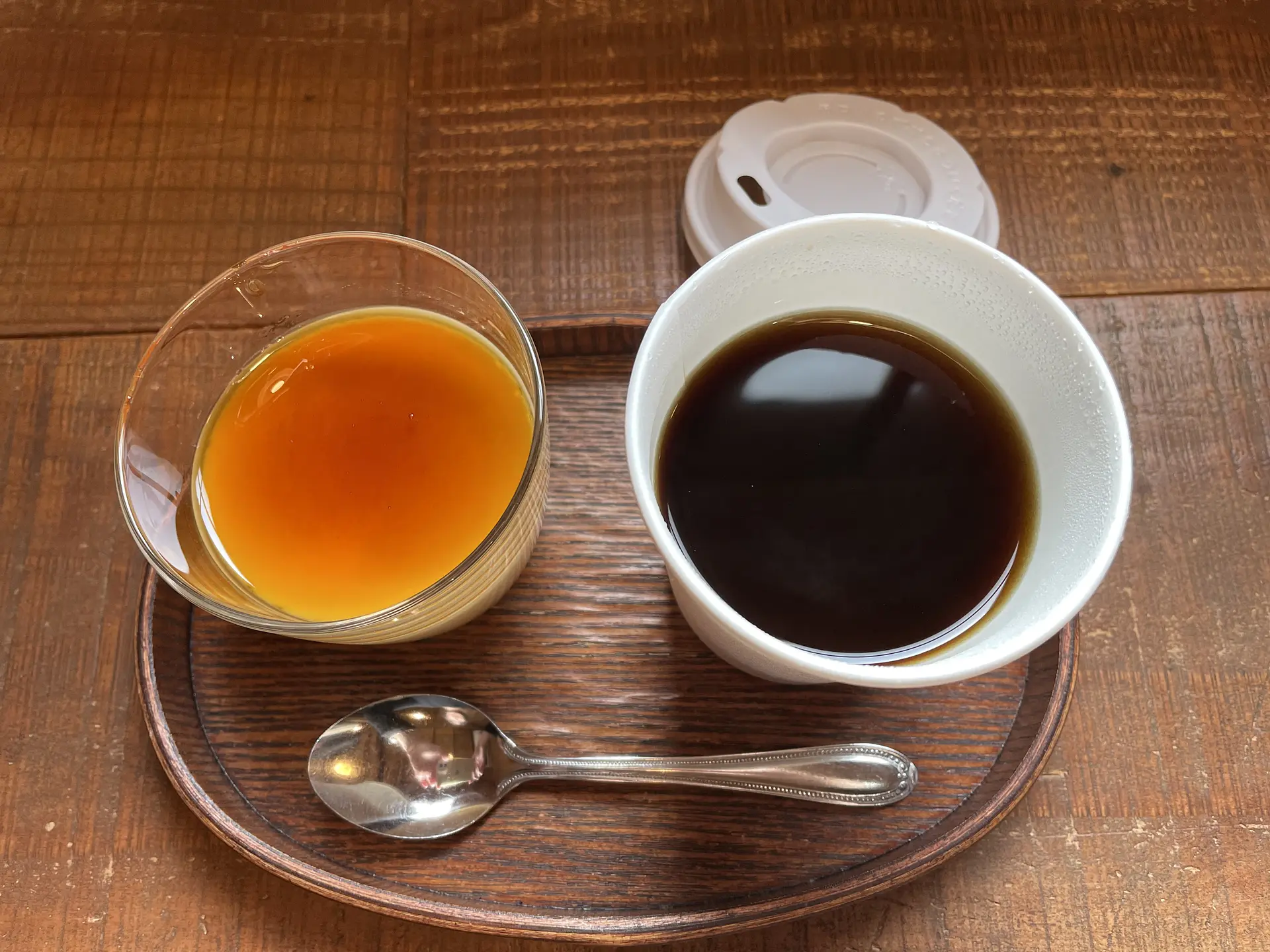 カラメルソースにはドリップコーヒーが入っていて、とてもコクのある深い味わいです。口に入れた瞬間、カラメルソースの旨みがフワッと広がります。プリンは店主さんが作っています。