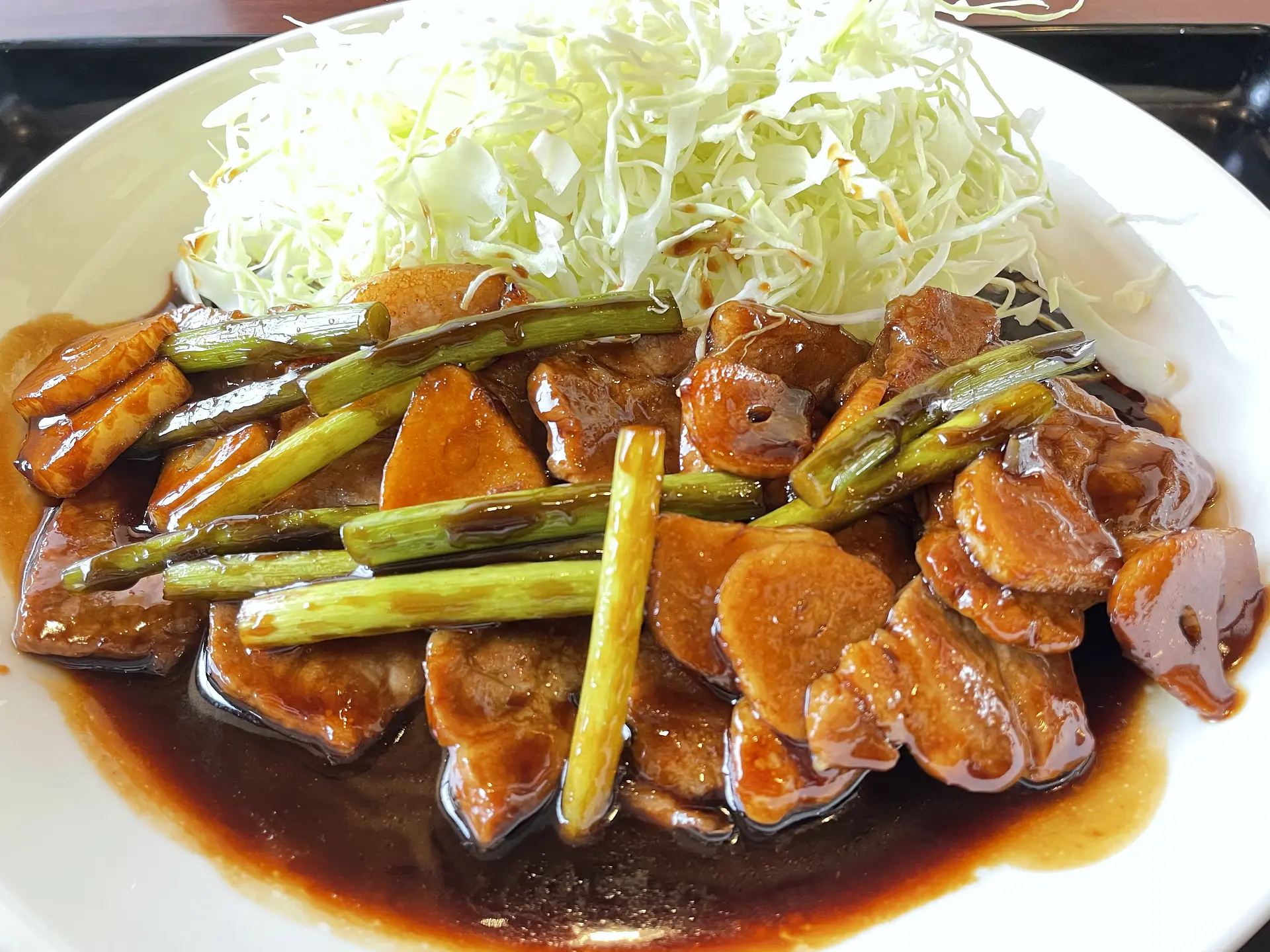 「大とんてき」と呼ばれる、グローブ型の分厚い一枚肉を使ったとんてきが有名ですが、こま切れや切り落とし肉でもOK。