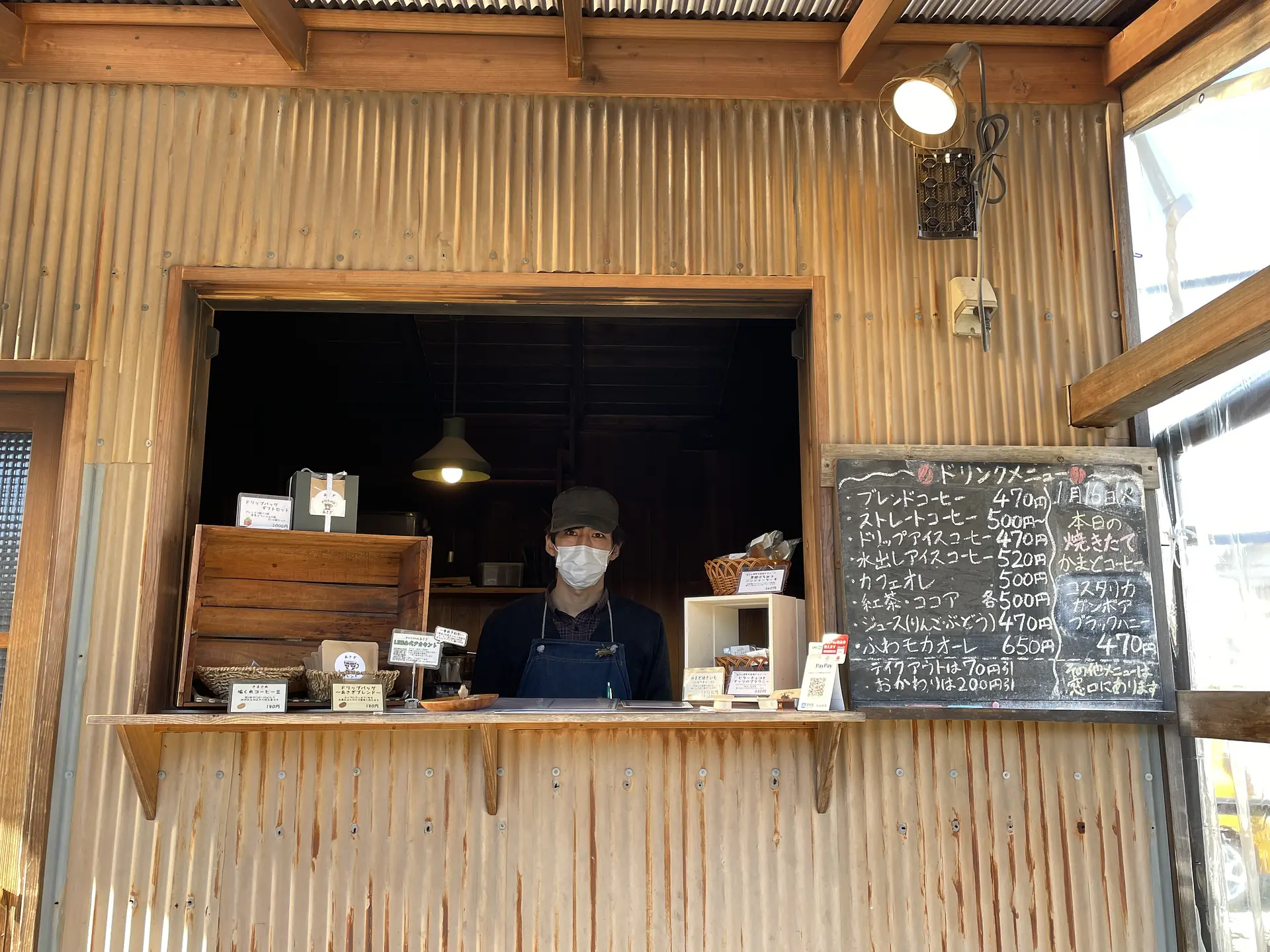 実は店主さん、開店前の午前中はご自身で薪を割り、お手製のかまどを使ってコーヒー豆を焙煎しているんです!その焙煎したての豆を使うのが、焼きたてかまどコーヒーです。