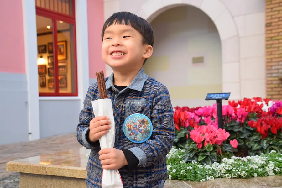 外はサックサクで中はモチモチで、美味しさのあまり息子もこの笑顔♪子供達が残したチュロスを食べようと思っていましたが、お気に召した様子でほぼ私の口には入りませんでした。志摩スペイン村での軽食にピッタリですよ♪