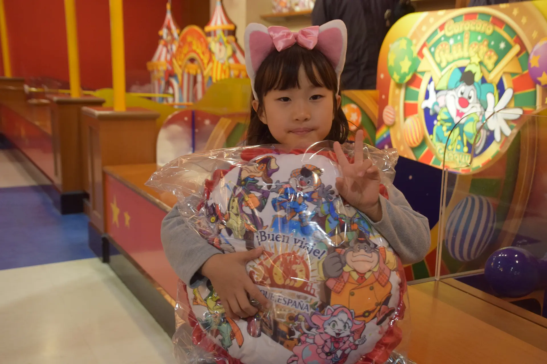 ボールを転がすだけなので、ほぼ運試し。ちなみに我が家は今までにも3回挑戦したことがあり、今回2度目の成功♪ここだけでしかGETできない貴重な30周年の可愛いクッションをGETし、娘は大喜びでした♪